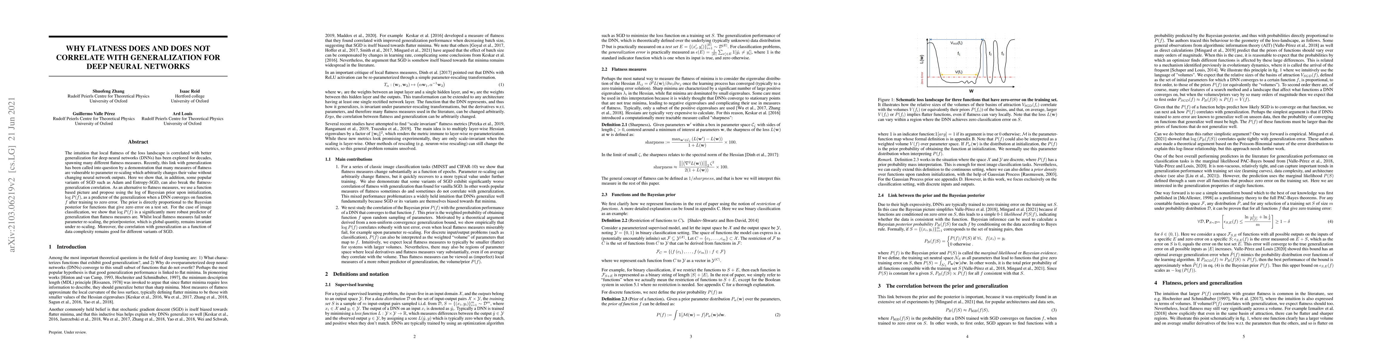 This paper examines the correlation between local flatness of the loss landscape and generalization in deep neural networks, finding that common flatness measures are unreliable due to parameter re-scaling. It proposes the log of the Bayesian prior, $\log P(f)$, as a robust alternative predictor for generalization that remains invariant under re-scaling and maintains good correlation across different SGD variants.