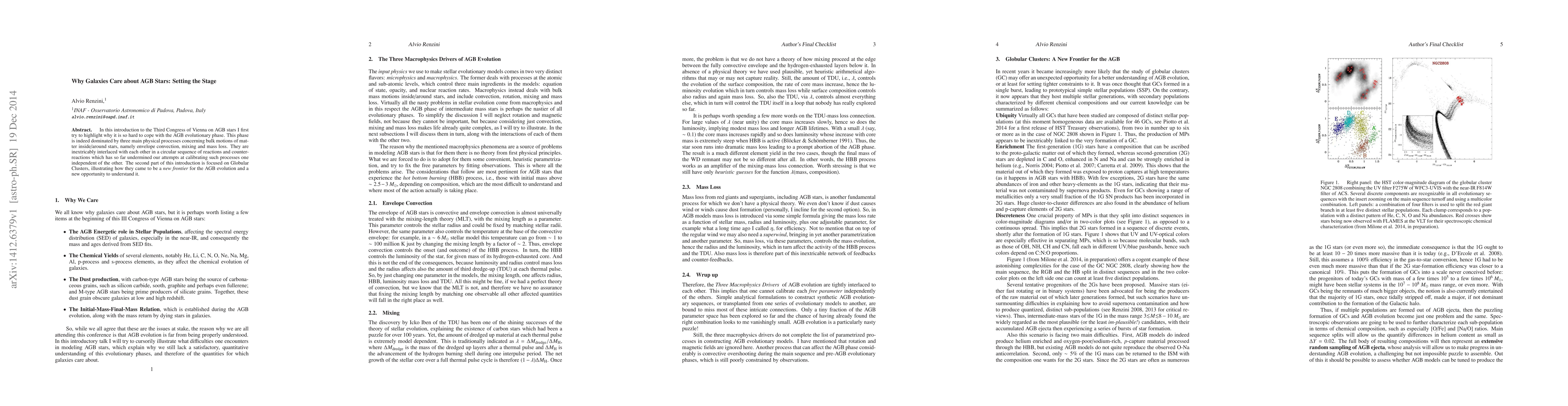 This paper introduces the complexities of the Asymptotic Giant Branch (AGB) phase in stellar evolution, emphasizing the intertwined processes of envelope convection, mixing, and mass loss. It highlights globular clusters as a new frontier for understanding AGB evolution.