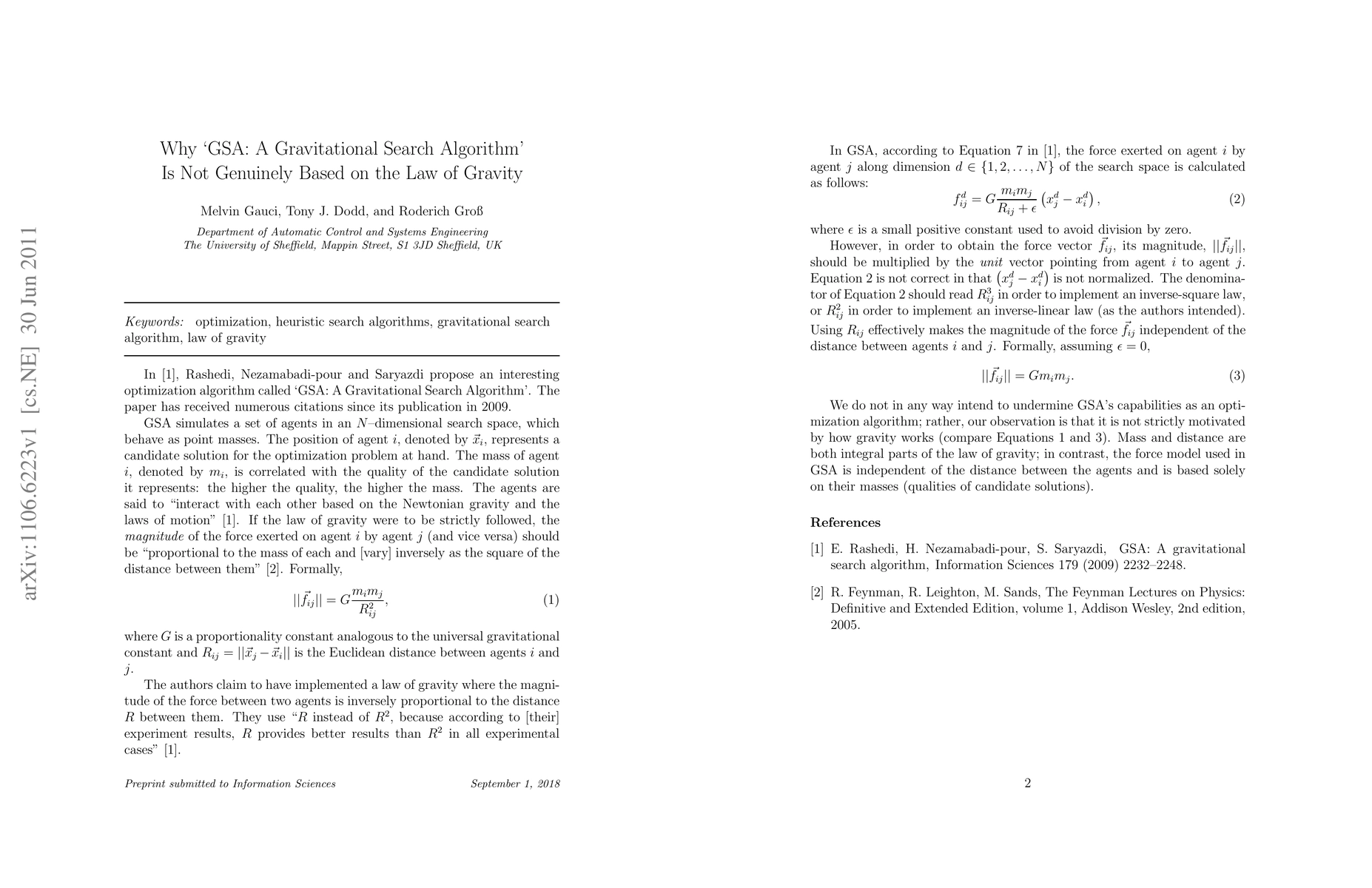 Why 'GSA: A Gravitational Search Algorithm' Is Not Genuinely Based on the Law of Gravity