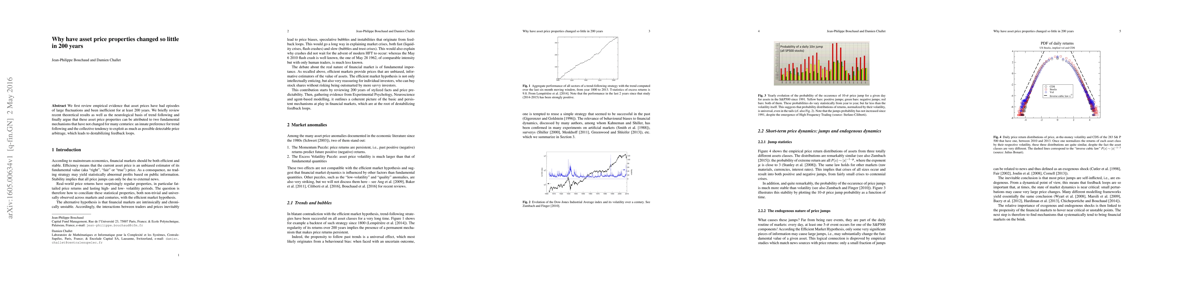 We first review empirical evidence that asset prices have had episodes of large fluctuations and been inefficient for at least 200 years. We briefly review recent theoretical results as well as the neurological basis of trend following and finally argue that these asset price properties can be attributed to two fundamental mechanisms that have not changed for many centuries: an innate preference for trend following and the collective tendency to exploit as much as possible detectable price arbitrage, which leads to destabilizing feedback loops.