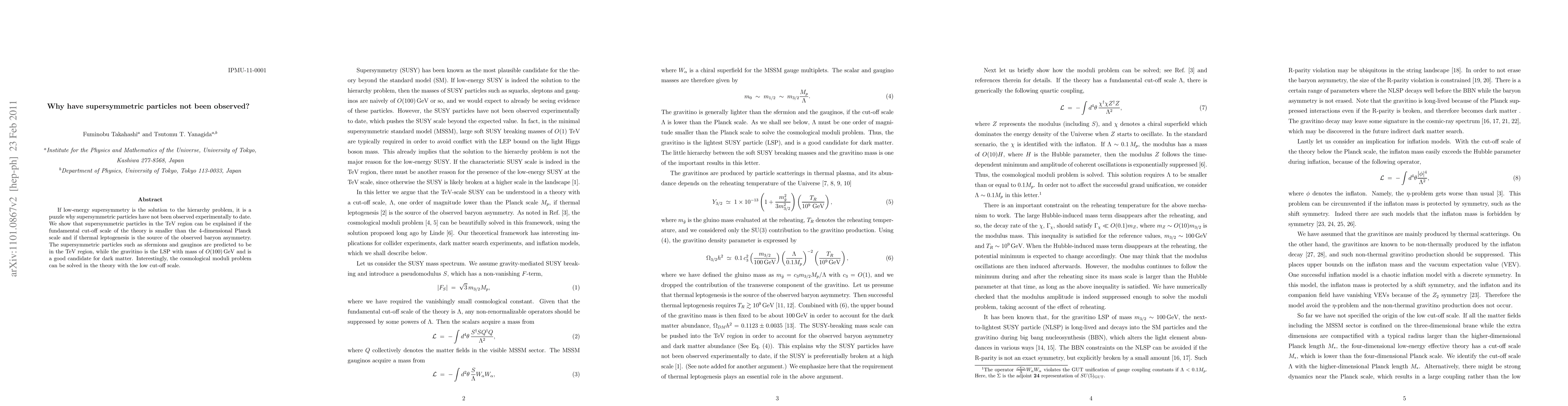 If low-energy supersymmetry is the solution to the hierarchy problem, it is a puzzle why supersymmetric particles have not been observed experimentally to date. We show that supersymmetric particles in the TeV region can be explained if the fundamental cut-off scale of the theory is smaller than the 4-dimensional Planck scale and if thermal leptogenesis is the source of the observed baryon asymmetry. The supersymmetric particles such as sfermions and gauginos are predicted to be in the TeV region, while the gravitino is the LSP with mass of O(100)GeV and is a good candidate for dark matter. Interestingly, the cosmological moduli problem can be solved in the theory with the low cut-off scale.