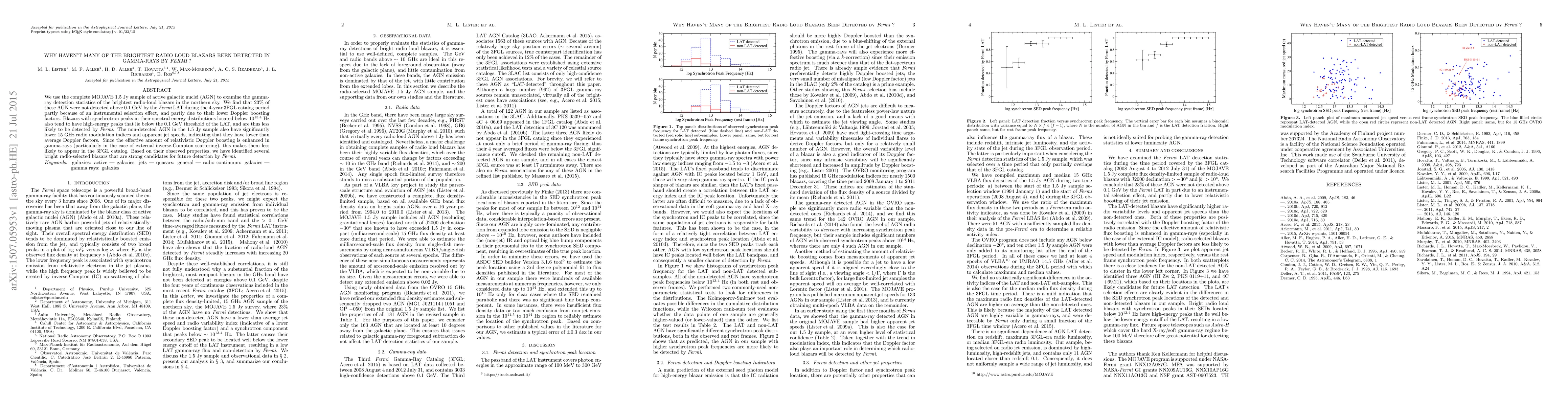 A study found that 23% of the brightest radio-loud blazars were not detected by Fermi due to instrumental selection effects or lower Doppler boosting factors, with some having high-energy peaks below the detection threshold.