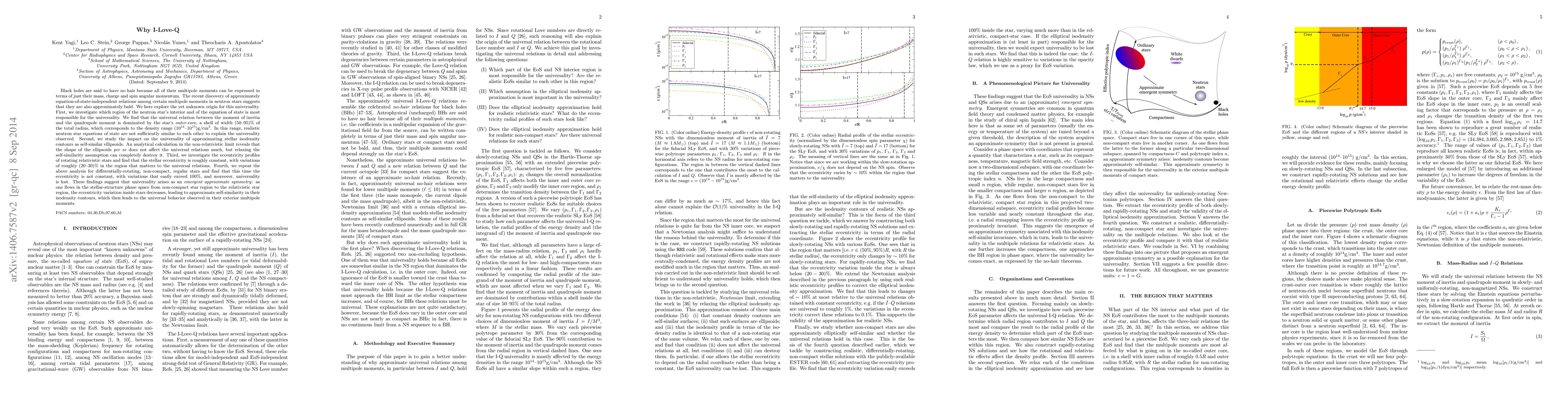 Black holes are said to have no hair because all of their multipole moments can be expressed in terms of just their mass, charge and spin angular momentum. The recent discovery of approximately equation-of-state-independent relations among certain multipole moments in neutron stars suggests that they are also approximately bald. We here explore the yet unknown origin for this universality. First, we investigate which region of the neutron star's interior and of the equation of state is most responsible for the universality. We find that the universal relation between the moment of inertia and the quadrupole moment is dominated by the star's outer-core, a shell of width (50-95)% of the total radius, which corresponds to the density range $(10^{14}$-$10^{15})$g/cm$^3$. Second, we study the impact on the universality of approximating stellar isodensity contours as self-similar ellipsoids. An analytical calculation in the Newtonian limit reveals that the shape of the ellipsoids does not affect the universal relations, but relaxing the self-similarity assumption can completely destroy it. Third, we investigate the eccentricity profiles of rotating relativistic stars and find that the ellipticity is roughly constant, with variations of roughly (20-30)% in the region that matters to the universal relations. Fourth, we repeat the above analysis for non-compact, regular stars and find that the ellipticity is not constant, with variations that easily exceed 100% and universality is lost. These findings suggest that universality arises as an emergent approximate symmetry: as one flows in the stellar-structure phase space from non-compact star region to the relativistic star region, the eccentricity variation inside stars decreases, leading to approximate self-similarity in their isodensity contours, which then leads to the universal behavior observed in their exterior multipole moments.