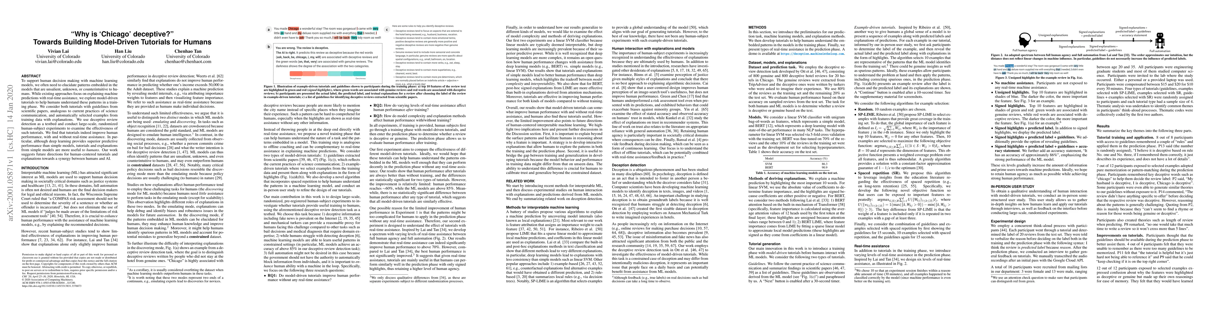 This paper explores model-driven tutorials to help humans understand complex machine learning patterns during training, using deceptive review detection as a testbed. The study finds that such tutorials improve human performance, especially when derived from simple models, suggesting a synergy between human understanding and AI.