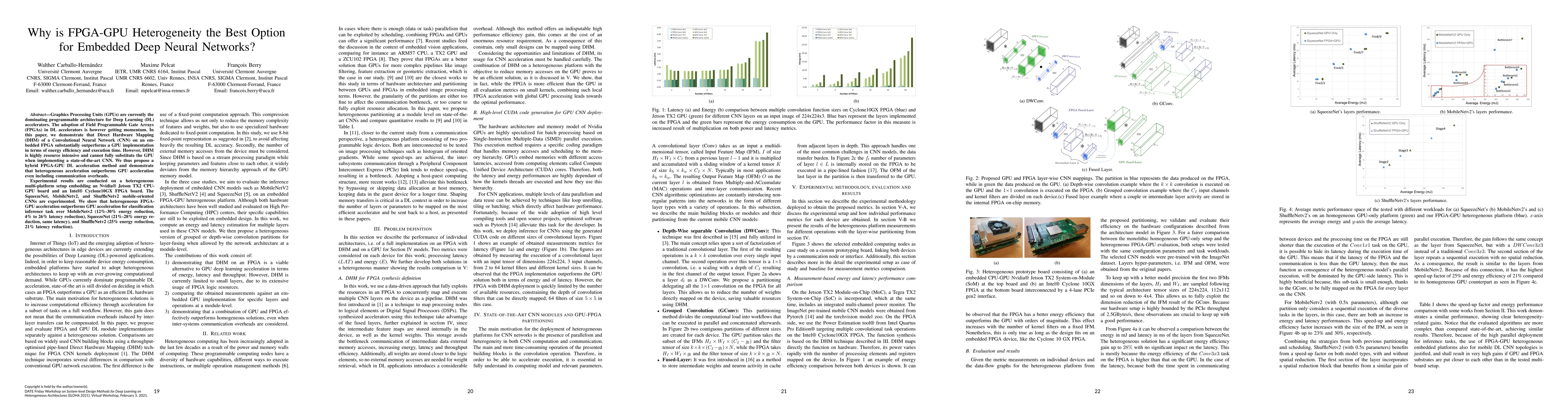 This research paper explores the benefits of combining FPGA and GPU architectures for accelerating deep neural networks, particularly Convolutional Neural Networks (CNNs). The study demonstrates that while FPGAs offer superior energy efficiency and execution speed for CNNs, they are resource-intensive and cannot fully replace GPUs. The proposed hybrid FPGA-GPU approach shows significant improvements in both energy efficiency and latency reduction compared to GPU-only implementations, making it a compelling option for embedded deep learning applications.