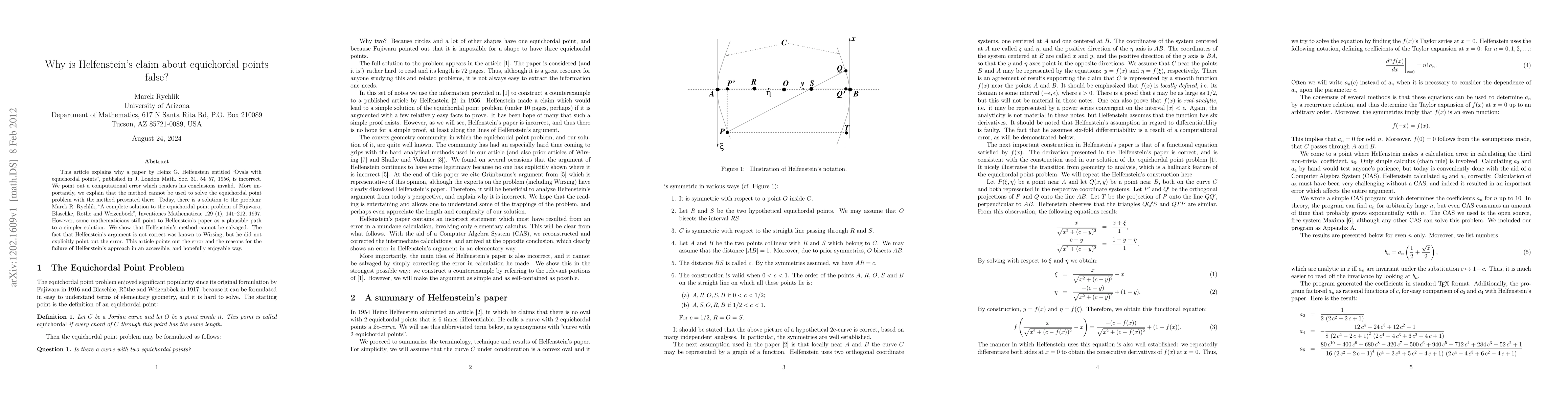 This paper refutes Helfenstein's claim about ovals with equichordal points, identifying a computational error and explaining why his method cannot solve the equichordal point problem, despite its continued mention as a potential solution. It highlights the correct solution by Marek R. Rychlik.
