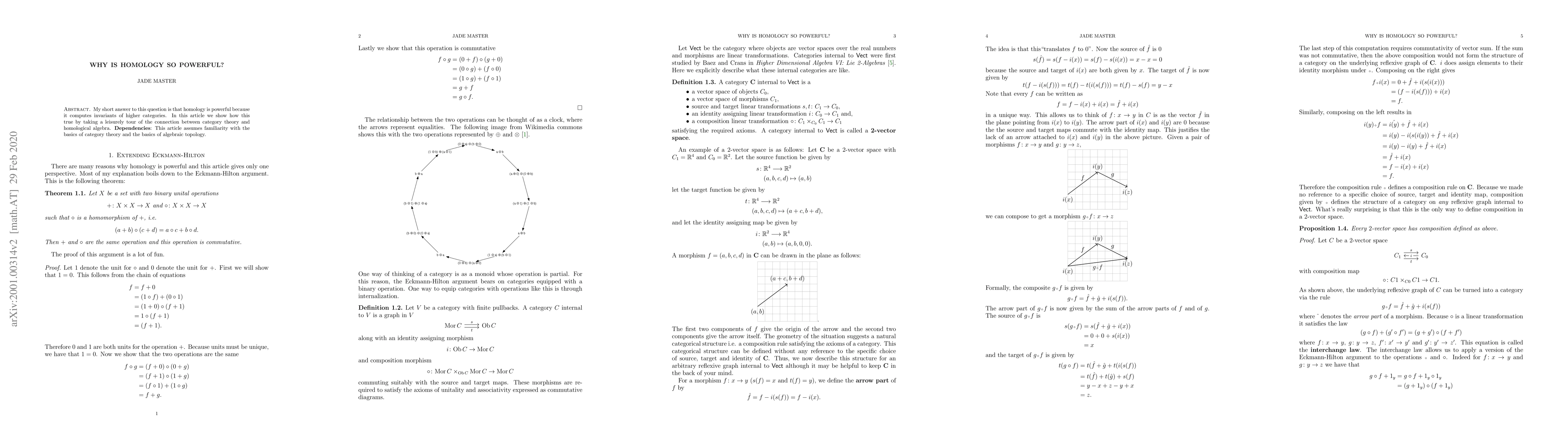My short answer to this question is that homology is powerful because it computes invariants of higher categories. In this article we show how this true by taking a leisurely tour of the connection between category theory and homological algebra.