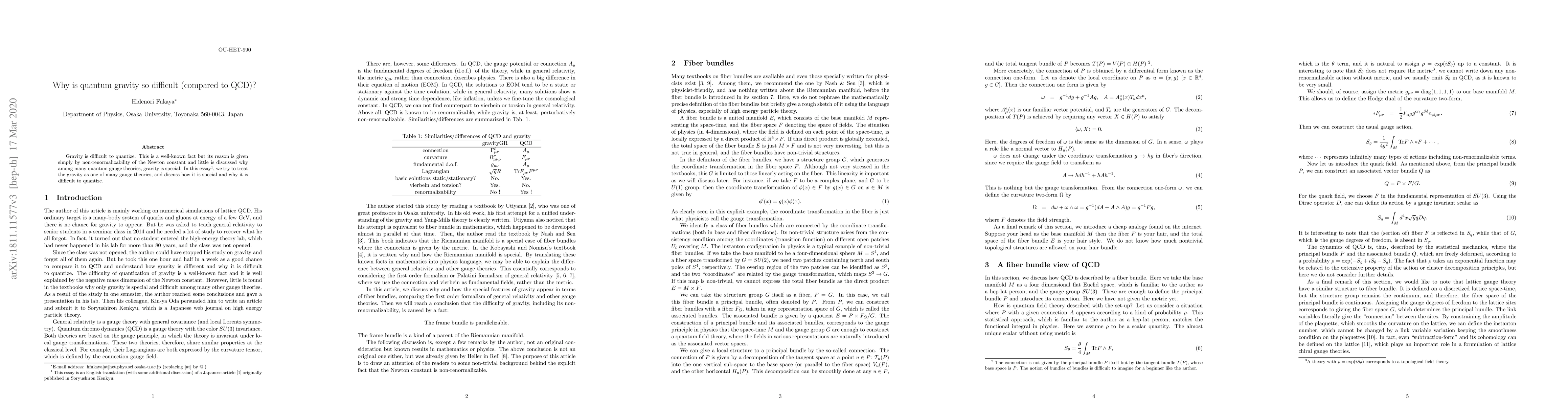 This paper explores why quantizing gravity is exceptionally challenging compared to quantum chromodynamics (QCD), attributing its difficulty to the non-renormalizability of the Newton constant and highlighting gravity's unique properties among quantum gauge theories.