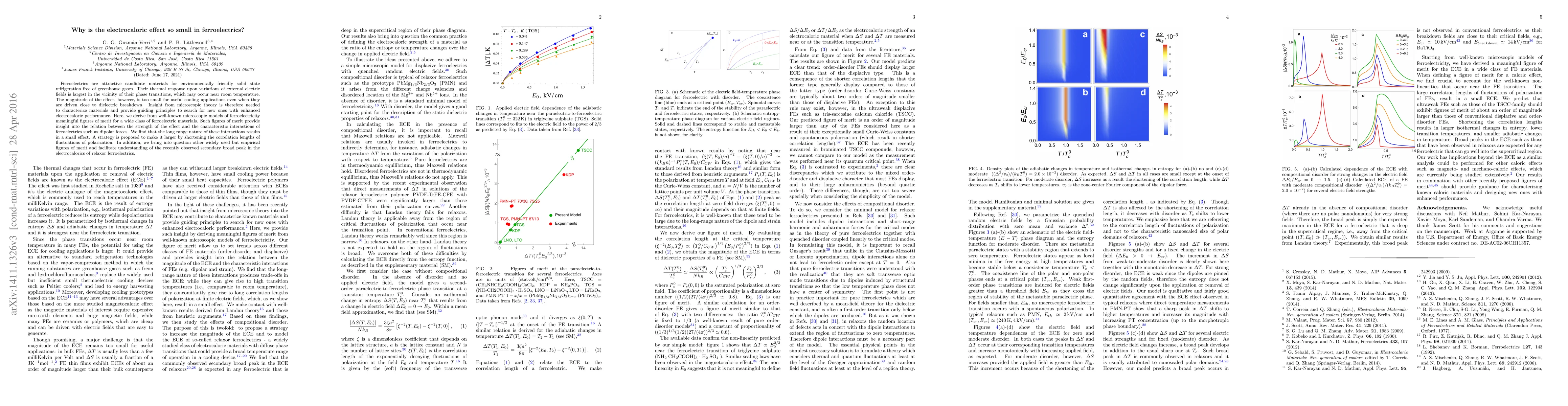 This paper explores the limited electrocaloric effect in ferroelectrics, crucial for developing eco-friendly refrigeration. It identifies the long-range dipole interactions as the primary reason for the small effect and proposes reducing polarization fluctuation correlation lengths to enhance performance.
