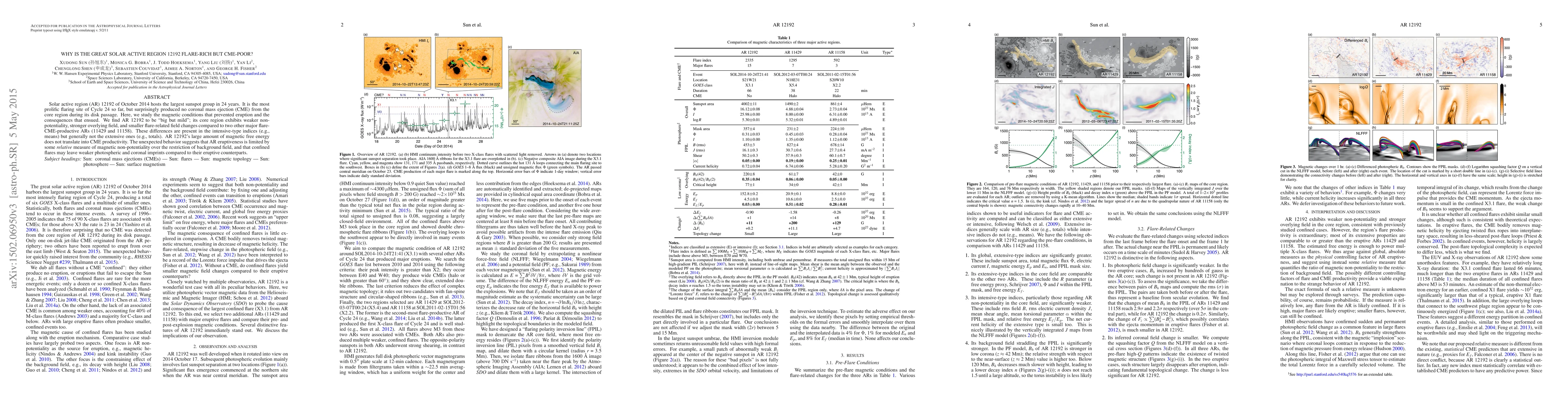 This study investigates why solar active region 12192, despite being flare-rich, produced no coronal mass ejections (CMEs). It finds that AR 12192 exhibits weaker magnetic non-potentiality and stronger overlying fields compared to other flare-CME-productive regions, suggesting a relative measure of magnetic non-potentiality limits eruptiveness.
