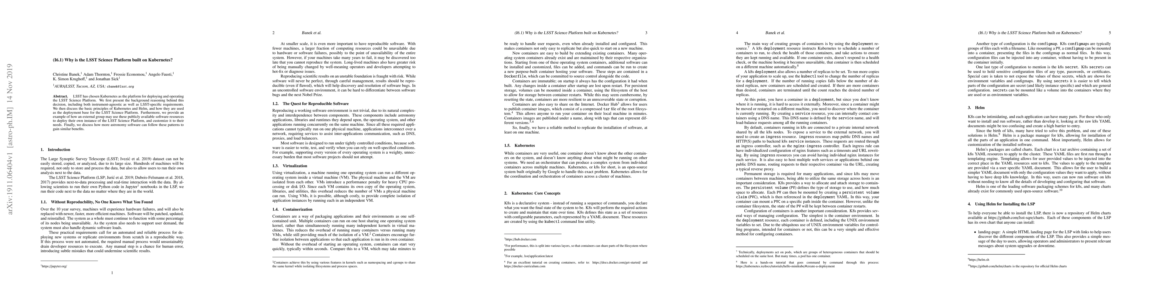 The LSST Science Platform leverages Kubernetes for deployment due to its flexibility and scalability, meeting both general and LSST-specific requirements. Kubernetes and Helm facilitate the platform's deployment and customization, enabling external groups to replicate and adapt it for their own use.