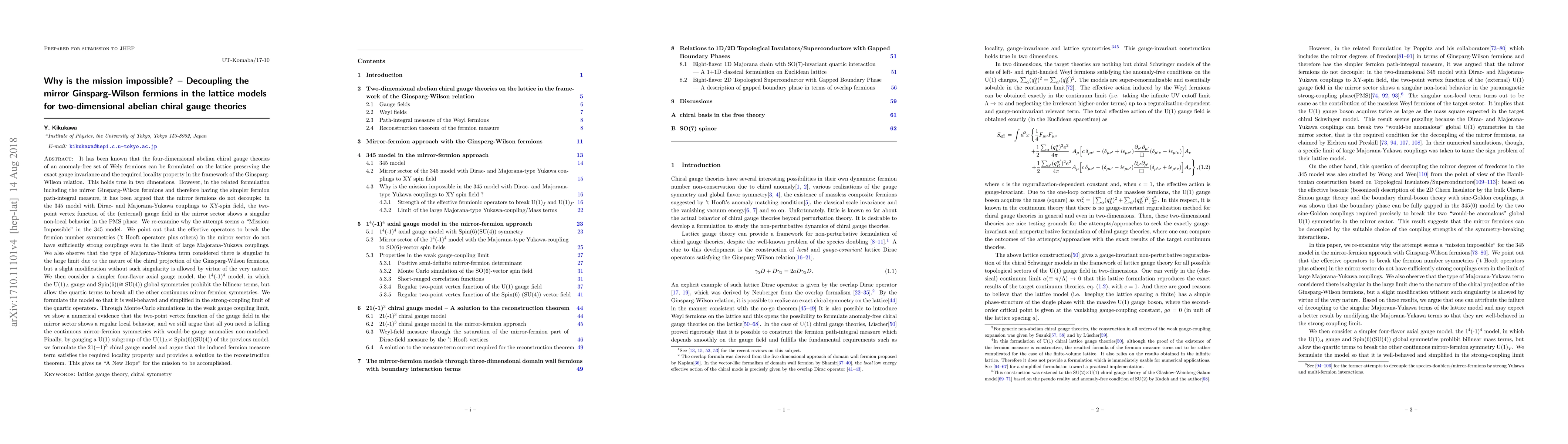 Researchers found that decoupling mirror fermions in lattice models for two-dimensional abelian chiral gauge theories is not impossible, but rather requires a slight modification to overcome singularities and ensure locality.