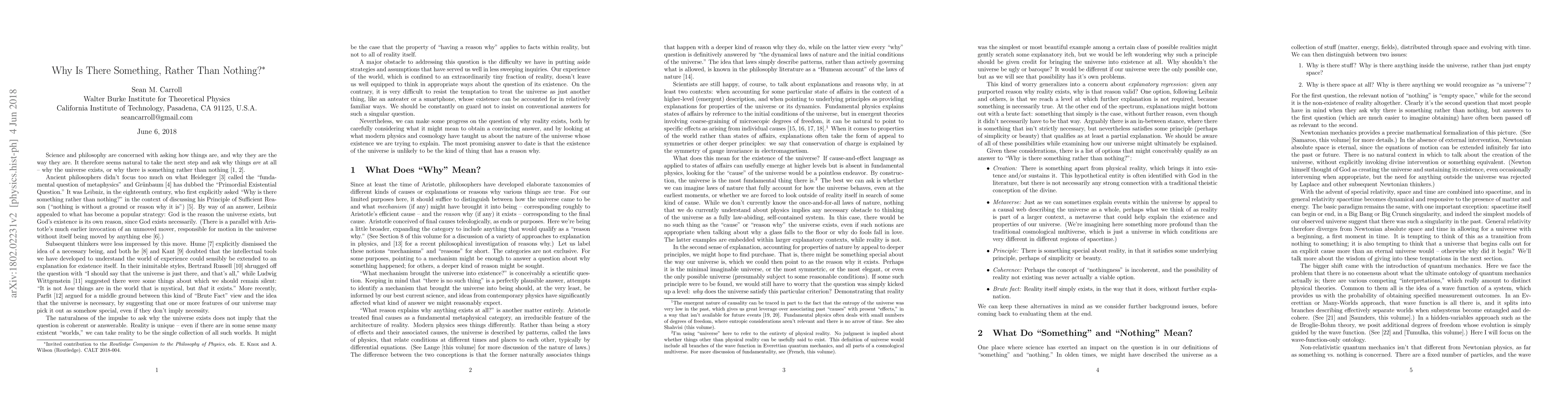 This paper explores the fundamental question of why the universe exists, positing that modern physics allows for a self-contained universe without external creation. The author concludes that any attempt to explain existence ultimately leads to brute facts, suggesting that the universe simply is without ultimate cause or explanation.