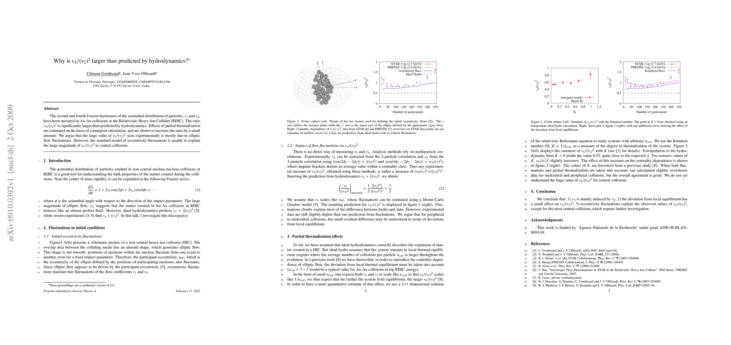 This paper investigates the unexpectedly large ratio $v_4/(v_2)^2$ in Au-Au collisions at RHIC, finding that it exceeds predictions from hydrodynamics. The authors suggest that elliptic flow fluctuations, rather than partial thermalization, are primarily responsible for this discrepancy, though current models cannot fully account for the observed magnitude.
