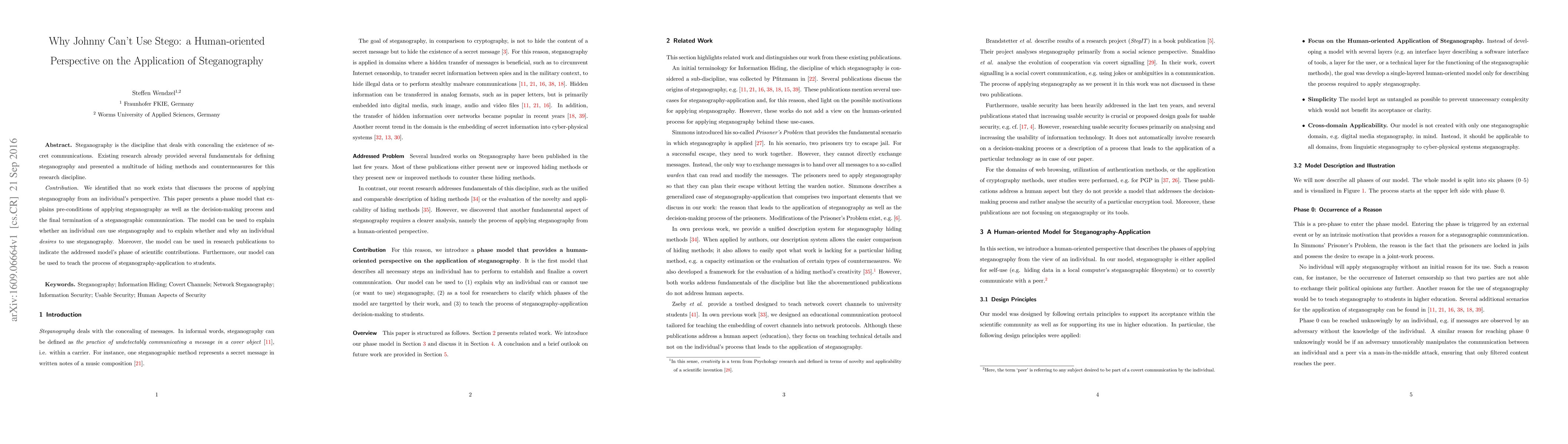 This paper introduces a human-oriented phase model explaining the conditions and decision-making process for individuals using steganography. The model aims to clarify whether and why people choose to apply steganography, and it can be used in both academic research and educational contexts.