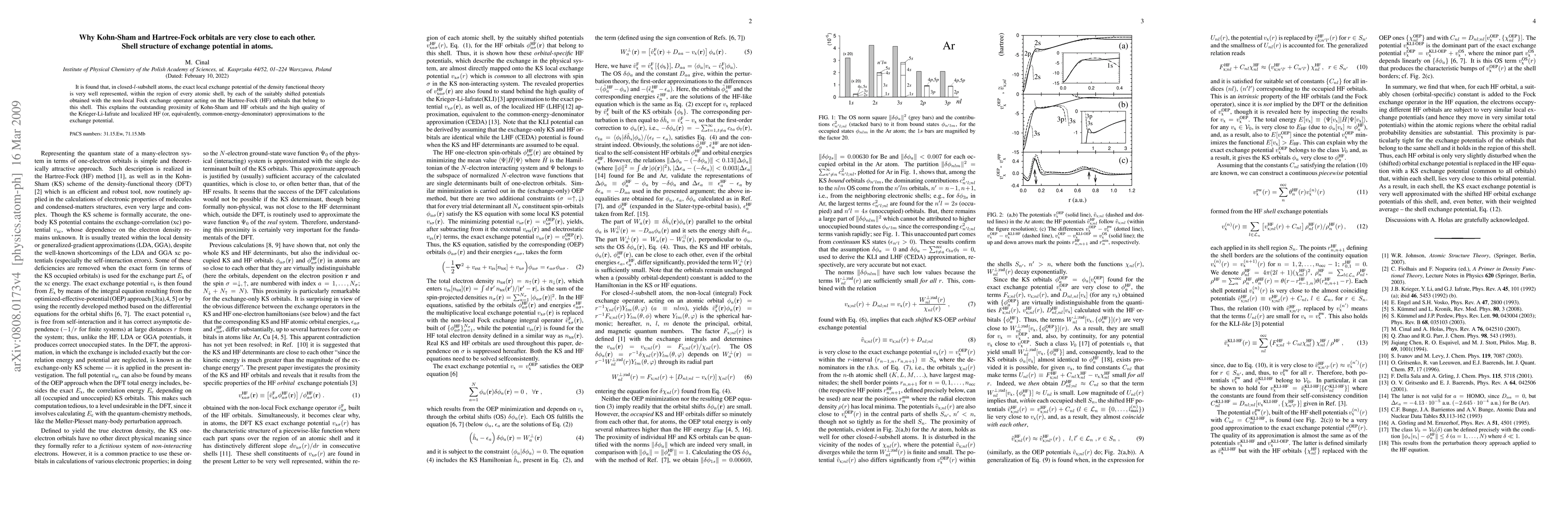 Summary: The paper demonstrates that in closed-$l$-subshell atoms, the exact local exchange potential in density functional theory closely matches the potentials derived from the non-local Fock exchange acting on Hartree-Fock orbitals, explaining the remarkable similarity between Kohn-Sham and Hartree-Fock orbitals.