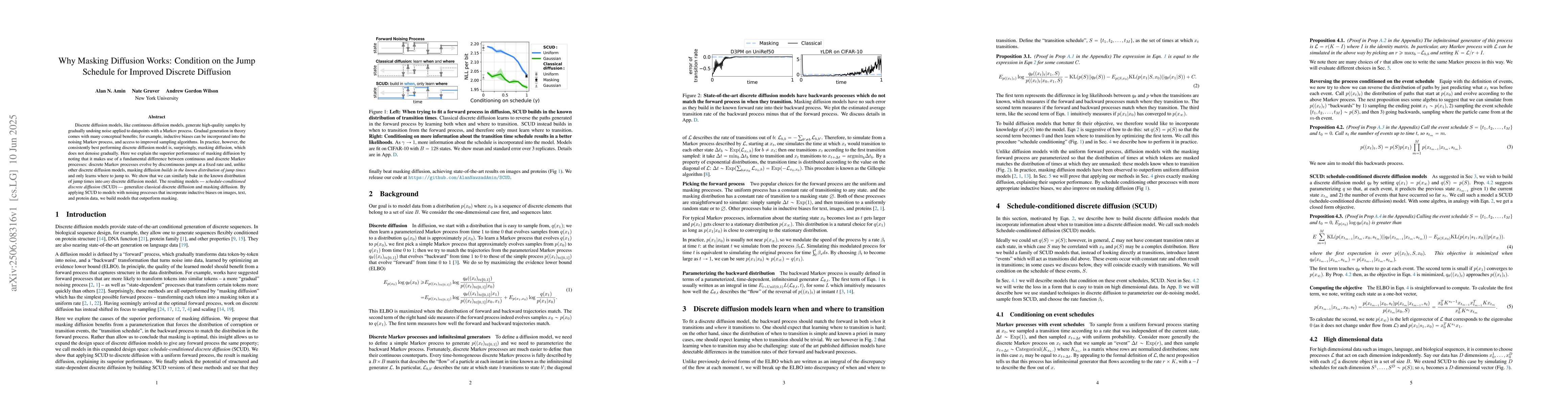 Masking diffusion outperforms other discrete diffusion models by leveraging its knowledge of jump times, and a new approach called Schedule-Conditioned Discrete Diffusion (SCUD) improves upon this method.