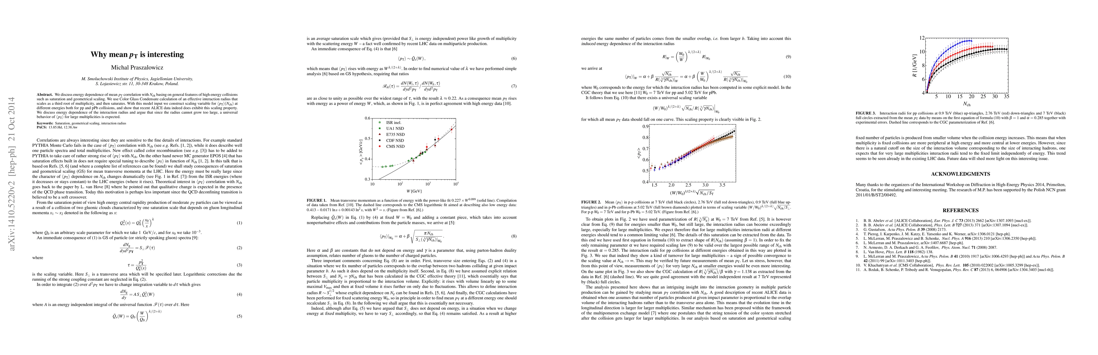 We discuss energy dependence of mean $p_{\rm T}$ correlation with $N_{\rm ch}$ basing on general features of high energy collisions such as saturation and geometrical scaling. We use Color Glass Condensate calculation of an effective interaction radius that scales as a third root of multiplicity, and then saturates. With this model input we construct scaling variable for $< p_{\rm T} > (N_{\rm ch})$ at different energies both for pp and pPb collisions, and show that recent ALICE data indeed does exhibit this scaling property. We discuss energy dependence of the interaction radius and argue that since the radius cannot grow too large, a universal behavior of $< p_{\rm T} >$ for large multiplicities is expected.
