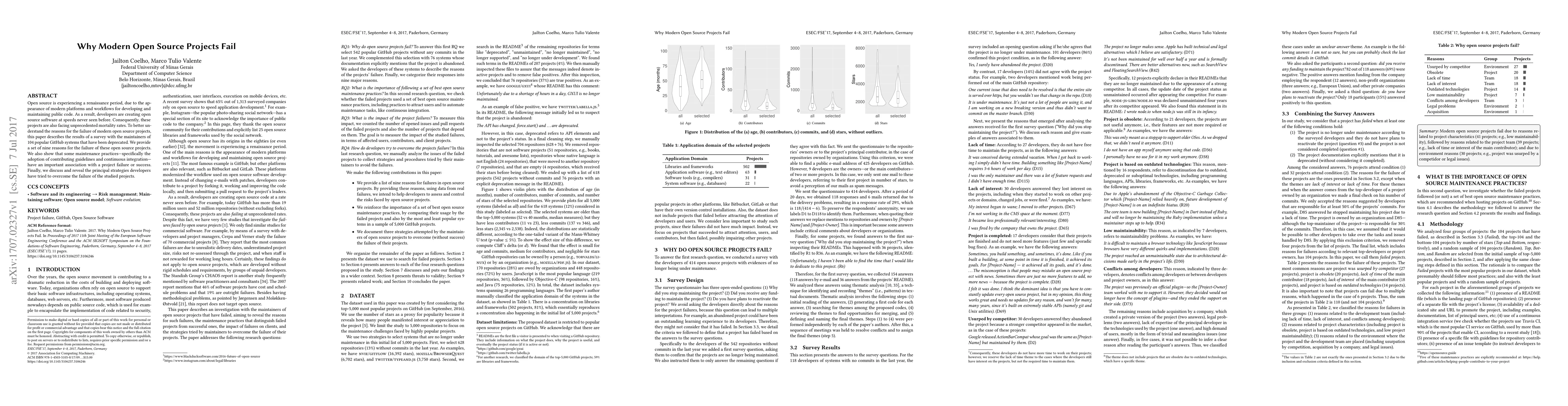 This research highlights the importance of understanding why open-source projects fail, and provides insights for improving project success.