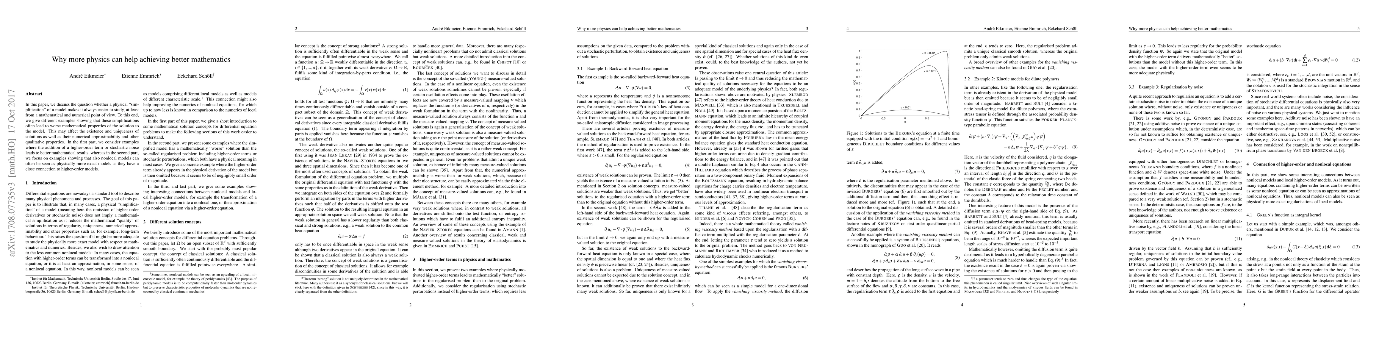 In this paper, we discuss the question whether a physical "simplification" of a model makes it always easier to study, at least from a mathematical and numerical point of view. To this end, we give different examples showing that these simplifications often lead to worse mathematical properties of the solution to the model. This may affect the existence and uniqueness of solutions as well as their numerical approximability and other qualitative properties. In the first part, we consider examples where the addition of a higher-order term or stochastic noise leads to better mathematical results, whereas in the second part, we focus on examples showing that also nonlocal models can often be seen as physically more exact models as they have a close connection to higher-order models.