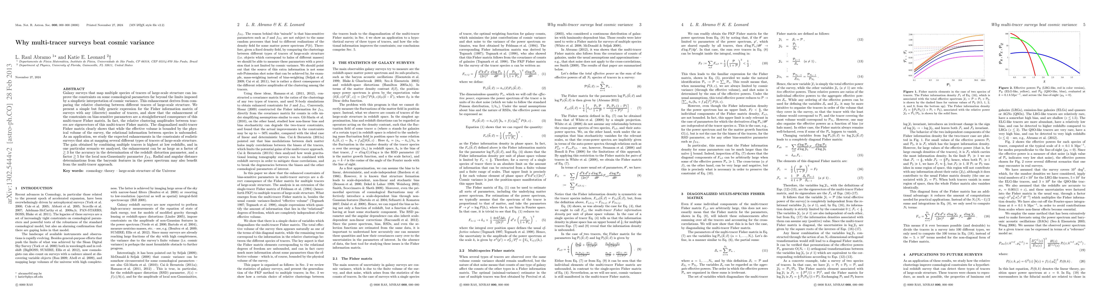 This paper demonstrates that galaxy surveys mapping multiple tracers of large-scale structure can significantly improve cosmological parameter constraints beyond what is achievable through cosmic variance alone. The study shows that the relational information between different tracers enhances parameter accuracy, with the greatest gains observed at low redshifts, up to a factor of 3 for redshift distortion and 5 for local non-Gaussianity.