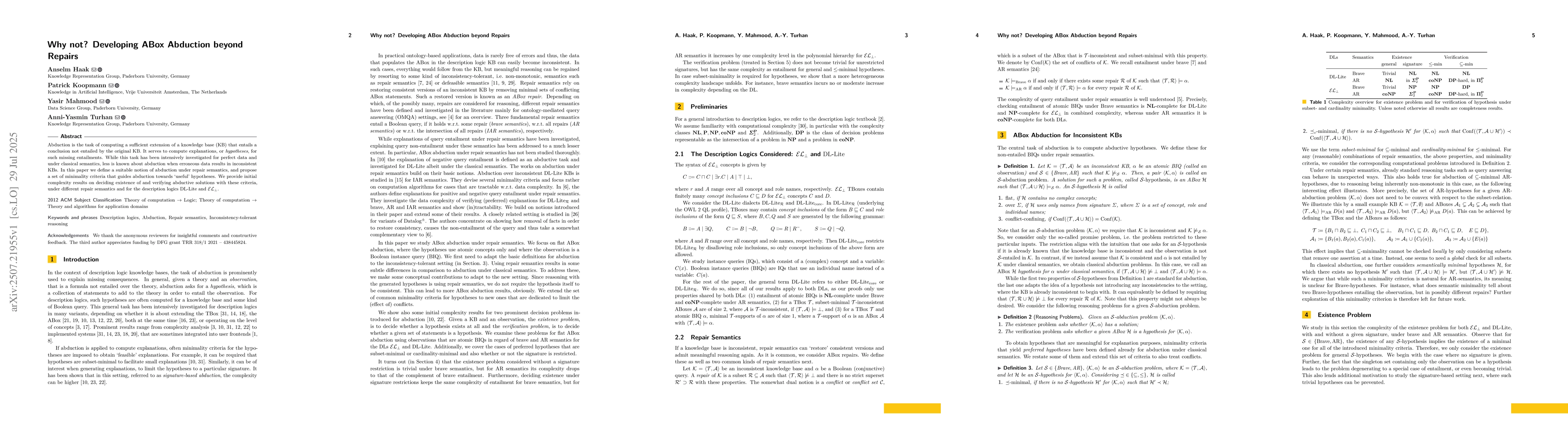 Abduction is the task of computing a sufficient extension of a knowledge base (KB) that entails a conclusion not entailed by the original KB. It serves to compute explanations, or hypotheses, for such missing entailments. While this task has been intensively investigated for perfect data and under classical semantics, less is known about abduction when erroneous data results in inconsistent KBs. In this paper we define a suitable notion of abduction under repair semantics, and propose a set of minimality criteria that guides abduction towards `useful' hypotheses. We provide initial complexity results on deciding existence of and verifying abductive solutions with these criteria, under different repair semantics and for the description logics DL-Lite and EL_bot.