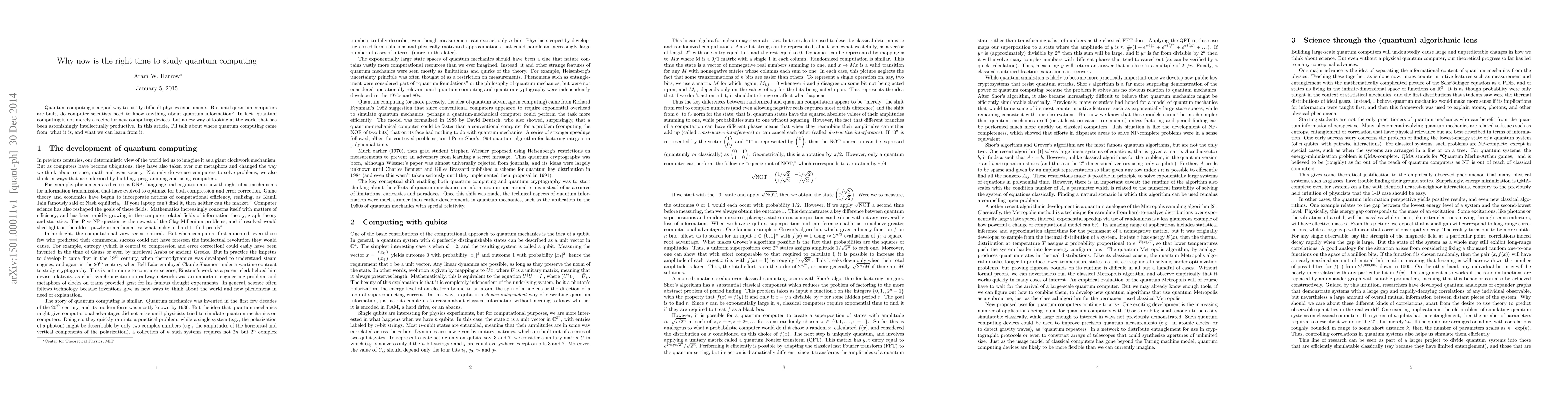 Quantum computing is a good way to justify difficult physics experiments. But until quantum computers are built, do computer scientists need to know anything about quantum information? In fact, quantum computing is not merely a recipe for new computing devices, but a new way of looking at the world that has been astonishingly intellectually productive. In this article, I'll talk about where quantum computing came from, what it is, and what we can learn from it.