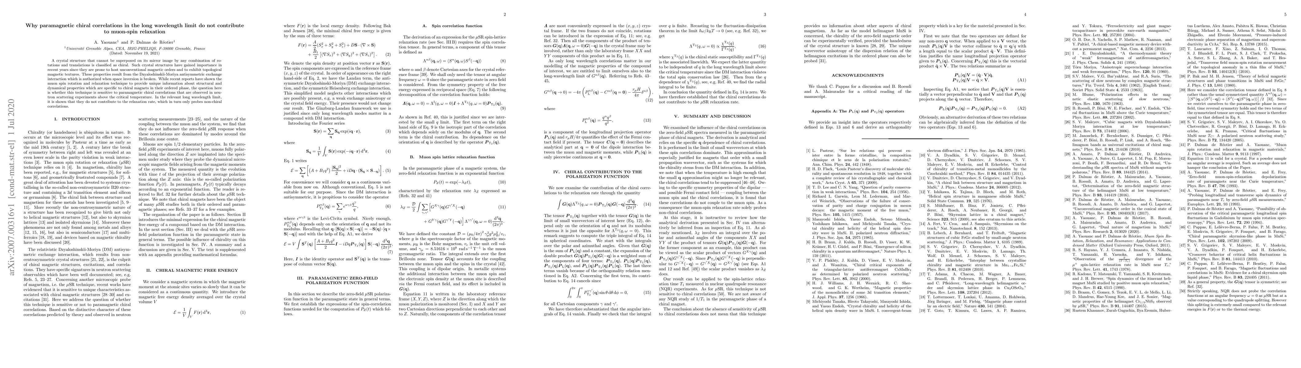 This paper explores the muon spin rotation and relaxation technique's sensitivity to paramagnetic chiral correlations in chiral magnets. It concludes that in the long wavelength limit, such correlations do not affect muon relaxation rates, which instead only reflect non-chiral correlations.
