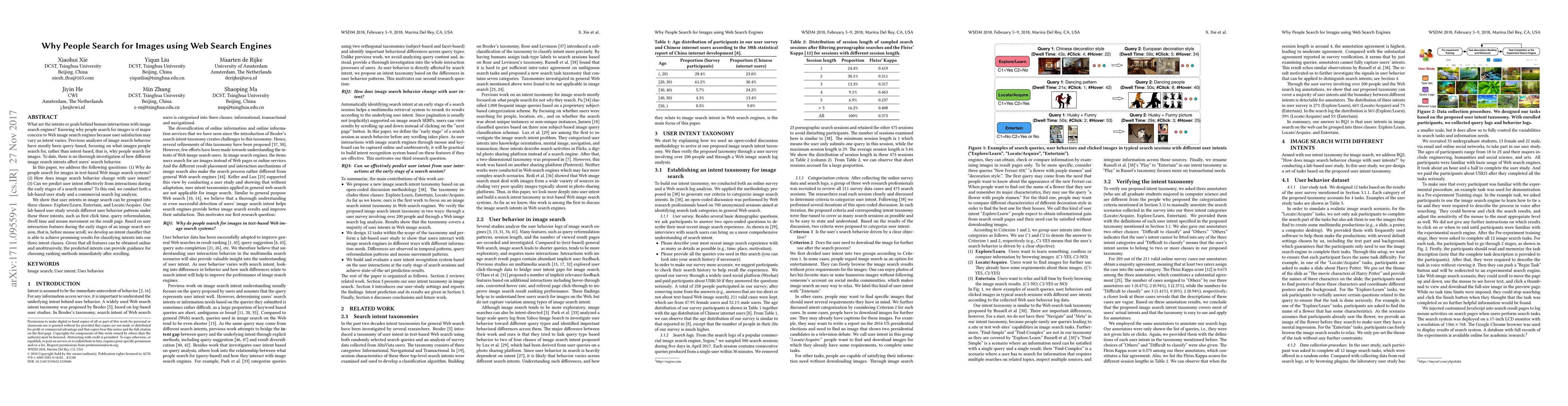 This paper investigates the intents behind users' image searches on web search engines, categorizing them into Explore/Learn, Entertain, and Locate/Acquire. It develops a classifier to predict these intents based on early search session interactions, aiming to improve user satisfaction by tailoring search results.