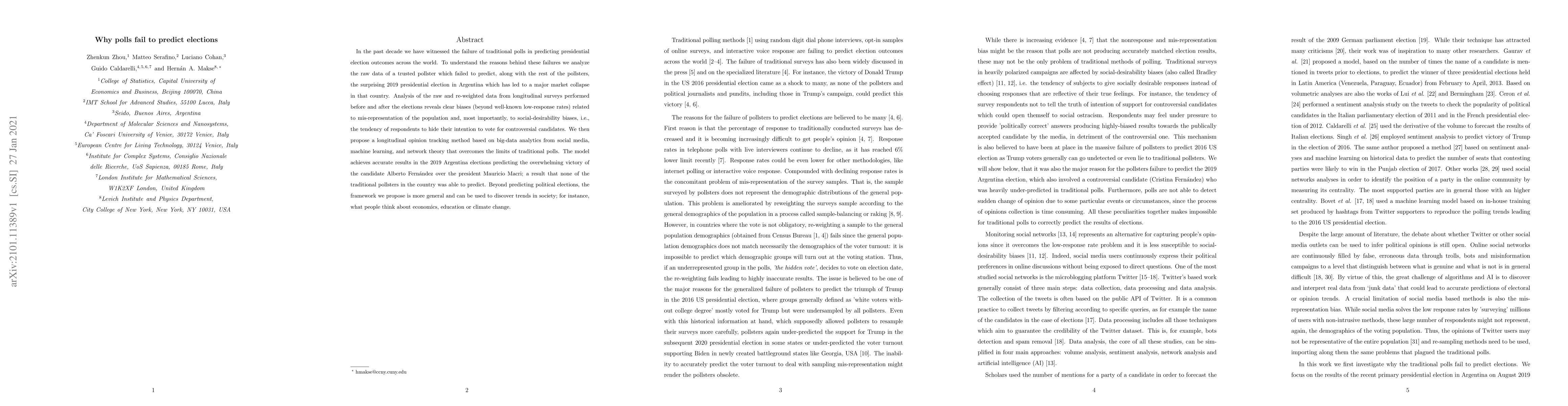 A recent study reveals that traditional polls fail to predict elections due to biases in respondent representation and social desirability effects, proposing a new longitudinal opinion tracking method based on big-data analytics from social media, machine learning, and network theory.