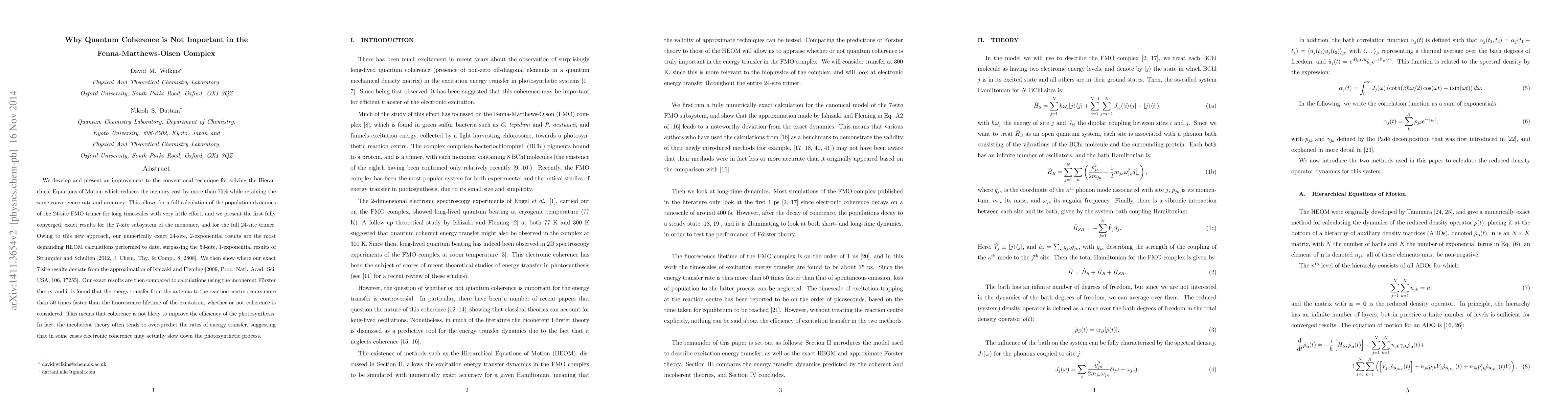 We develop and present an improvement to the conventional technique for solving the Hierarchical Equations of Motion which reduces the memory cost by more than 75% while retaining the same convergence rate and accuracy. This allows for a full calculation of the population dynamics of the 24-site FMO trimer for long timescales with very little effort, and we present the first fully converged, exact results for the 7-site subsystem of the monomer, and for the full 24-site trimer. Owing to this new approach, our numerically exact 24-site, 2-exponential results are the most demanding HEOM calculations performed to date, surpassing the 50-site, 1-exponential results of Strumpfer and Schulten [2012, J. Chem. Thy. & Comp., 8, 2808]. We then show where our exact 7-site results deviate from the approximation of Ishizaki and Fleming [2009, Proc. Natl. Acad. Sci. USA, 106, 17255]. Our exact results are then compared to calculations using the incoherent Forster theory, and it is found that the energy transfer from the antenna to the reaction center occurs more than 50 times faster than the fluorescence lifetime of the excitation, whether or not coherence is considered. This means that coherence is not likely to improve the efficiency of the photosynthesis. In fact, the incoherent theory often tends to over-predict the rates of energy transfer, suggesting that in some cases electronic coherence may actually slow down the photosynthetic process.
