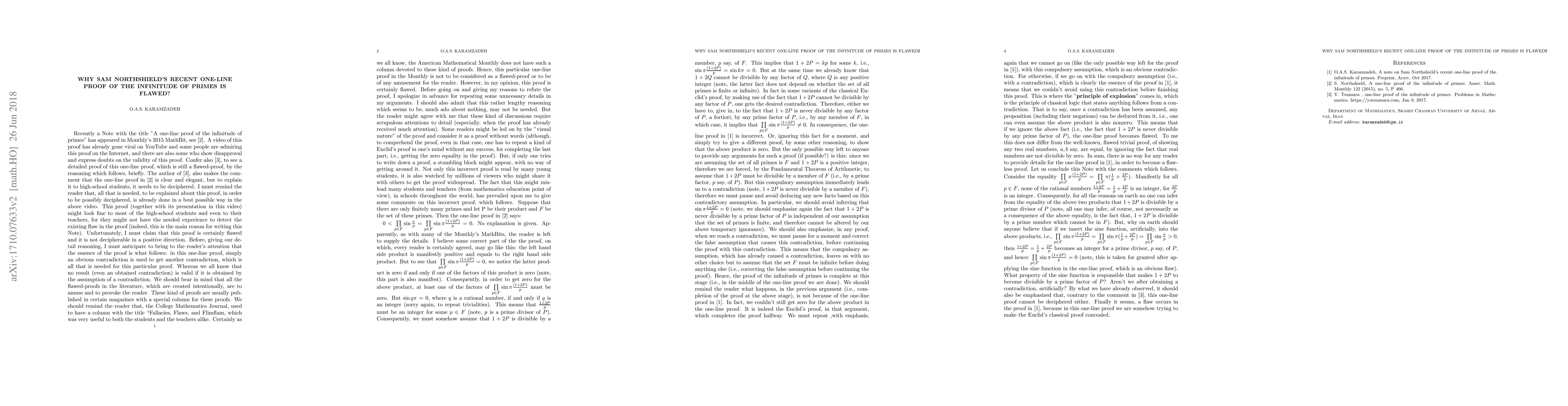 Summary: This paper critiques Sam Northshield's purported one-line proof of the infinitude of primes, demonstrating its logical flaws and invalidating the claim. The refutation underscores the necessity for rigorous mathematical proofs in establishing such fundamental theorems.