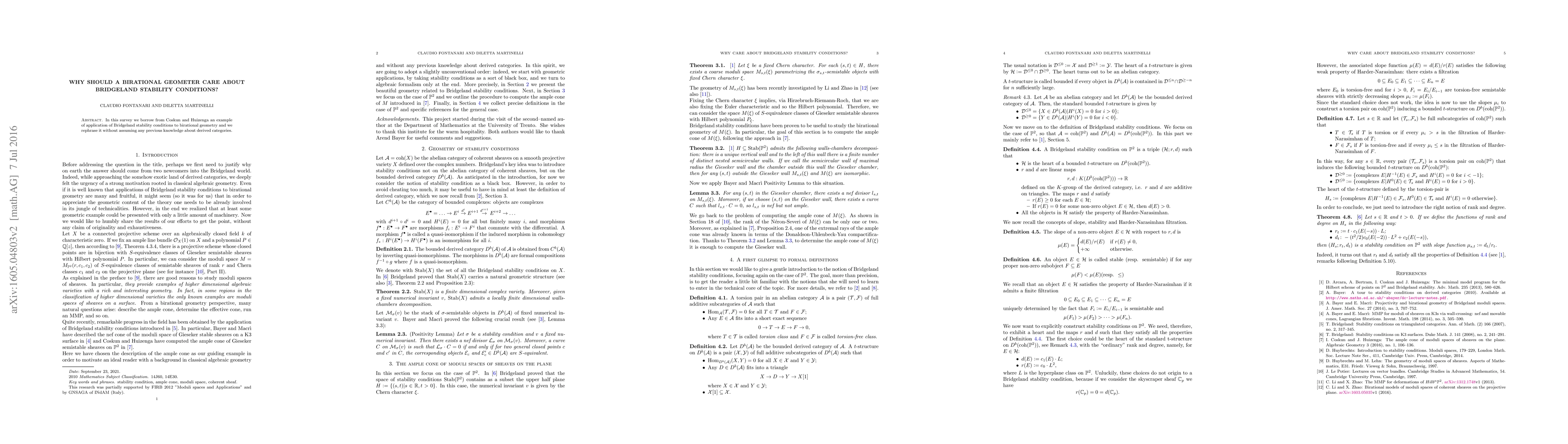 In this survey we borrow from Coskun and Huizenga an example of application of Bridgeland stability conditions to birational geometry and we rephrase it without assuming any previous knowledge about derived categories.