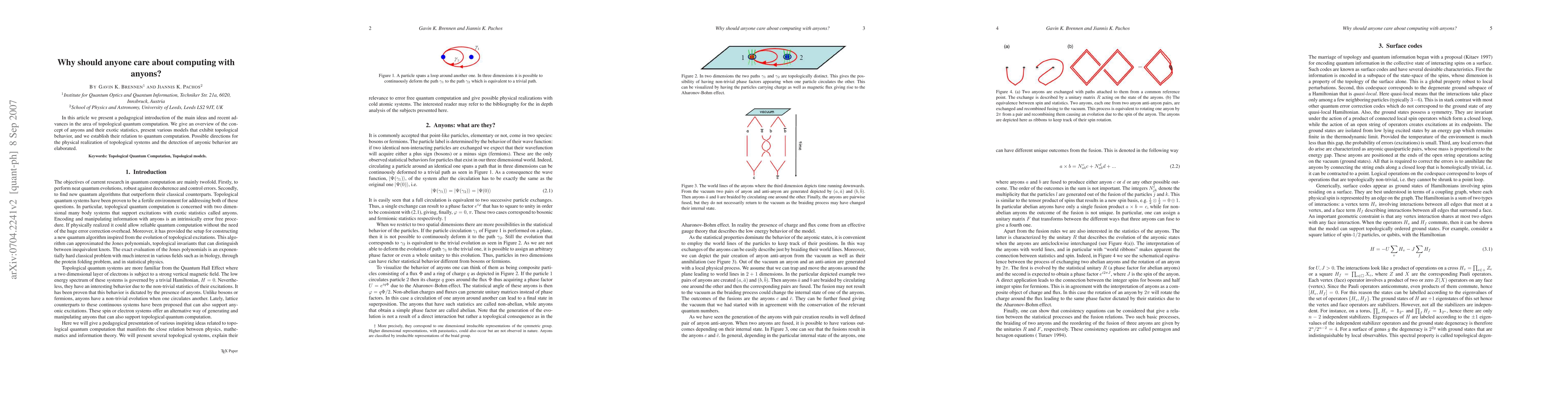 This paper offers an accessible overview of topological quantum computation, explaining the concept of anyons and their unique statistical properties. It explores models exhibiting topological behavior and their potential in quantum computation, discussing physical realization and detection methods.
