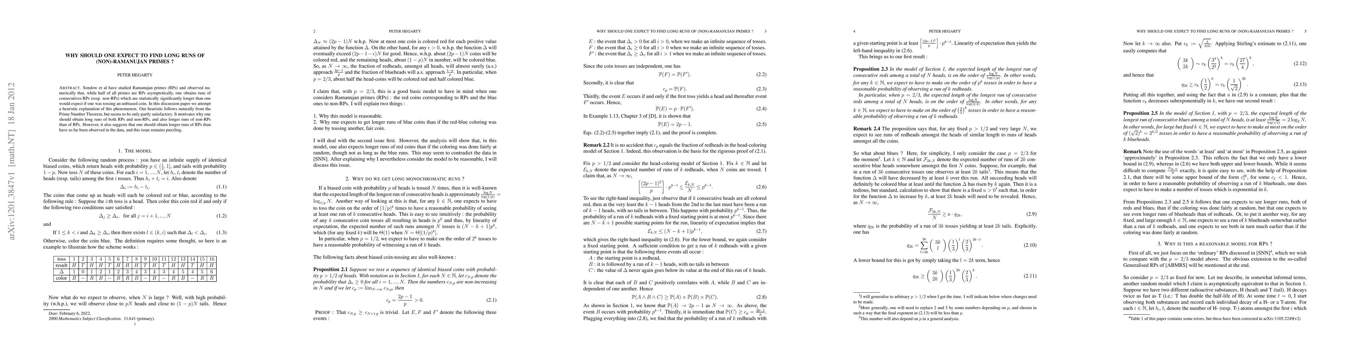 Sondow et al have studied Ramanujan primes (RPs) and observed numerically that, while half of all primes are RPs asymptotically, one obtains runs of consecutives RPs (resp. non-RPs) which are statistically significantly longer than one would expect if one was tossing an unbiased coin. In this discussion paper we attempt a heuristic explanation of this phenomenon. Our heuristic follows naturally from the Prime Number Theorem, but seems to be only partly satisfactory. It motivates why one should obtain long runs of both RPs and non-RPs, and also longer runs of non-RPs than of RPs. However, it also suggests that one should obtain longer runs of RPs than have so far been observed in the data, and this issue remains puzzling.