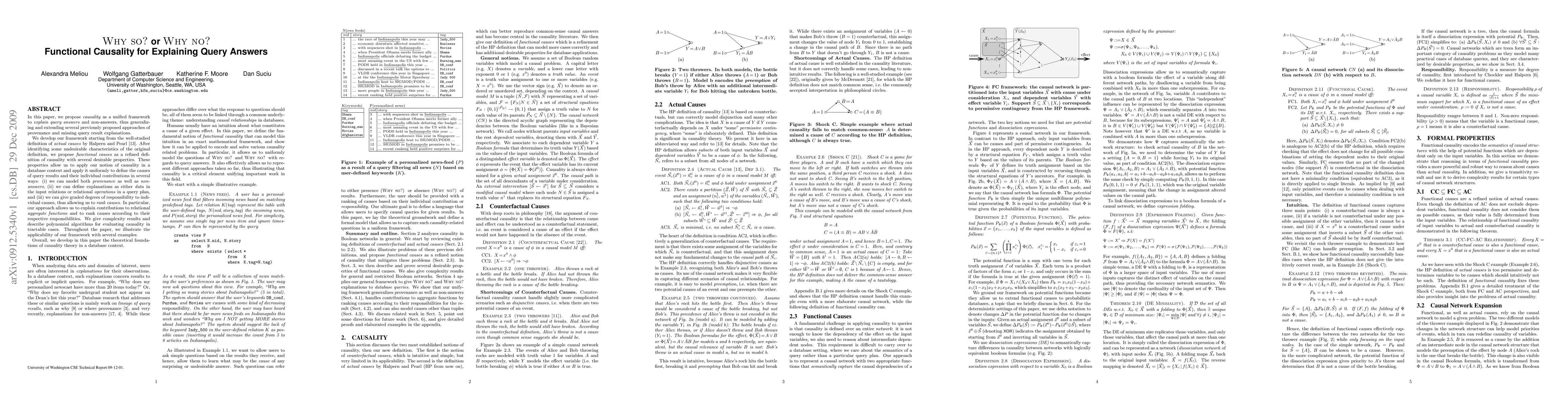 This paper proposes causality as a unified framework to explain query answers and non-answers, refining the concept of functional causes to provide desirable properties for database contexts. The authors develop algorithms to evaluate causality and illustrate its application through examples.