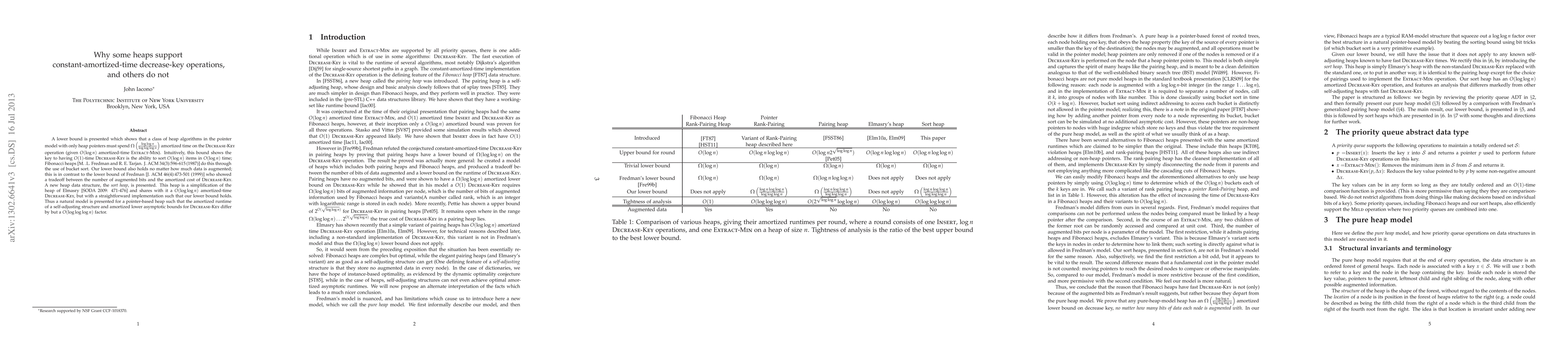 A lower bound is presented which shows that a class of heap algorithms in the pointer model with only heap pointers must spend Omega(log log n / log log log n) amortized time on the decrease-key operation (given O(log n) amortized-time extract-min). Intuitively, this bound shows the key to having O(1)-time decrease-key is the ability to sort O(log n) items in O(log n) time; Fibonacci heaps [M.L. Fredman and R. E. Tarjan. J. ACM 34(3):596-615 (1987)] do this through the use of bucket sort. Our lower bound also holds no matter how much data is augmented; this is in contrast to the lower bound of Fredman [J. ACM 46(4):473-501 (1999)] who showed a tradeoff between the number of augmented bits and the amortized cost of decrease-key. A new heap data structure, the sort heap, is presented. This heap is a simplification of the heap of Elmasry [SODA 2009: 471-476] and shares with it a O(log log n) amortized-time decrease-key, but with a straightforward implementation such that our lower bound holds. Thus a natural model is presented for a pointer-based heap such that the amortized runtime of a self-adjusting structure and amortized lower asymptotic bounds for decrease-key differ by but a O(log log log n) factor.