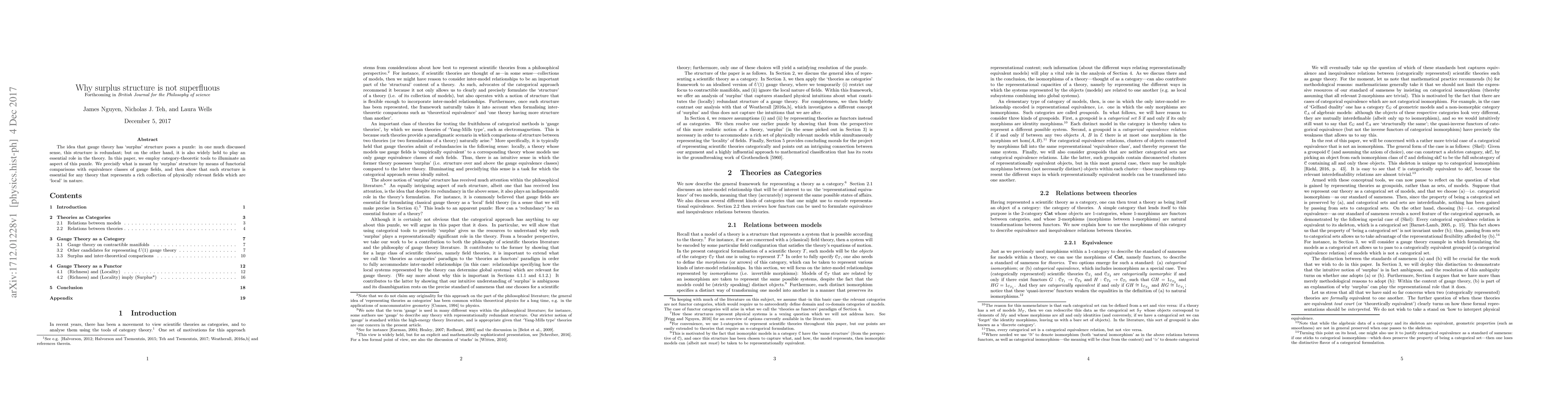 The idea that gauge theory has 'surplus' structure poses a puzzle: in one much discussed sense, this structure is redundant; but on the other hand, it is also widely held to play an essential role in the theory. In this paper, we employ category-theoretic tools to illuminate an aspect of this puzzle. We precisify what is meant by 'surplus' structure by means of functorial comparisons with equivalence classes of gauge fields, and then show that such structure is essential for any theory that represents a rich collection of physically relevant fields which are 'local' in nature.