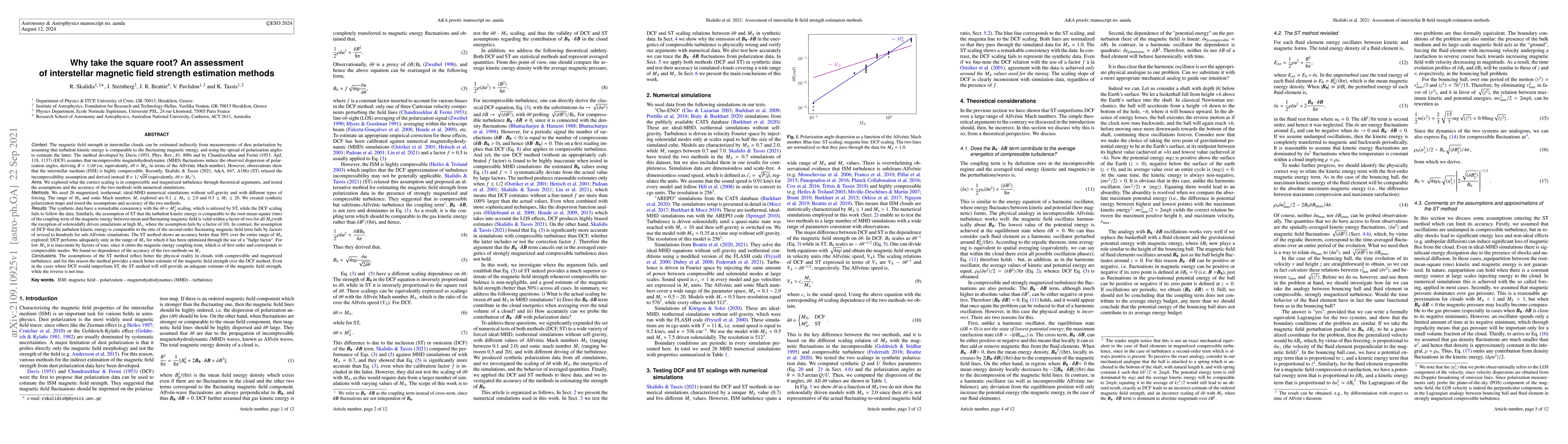 The magnetic field strength in interstellar clouds can be estimated indirectly by using the spread of dust polarization angles ($\delta \theta$). The method developed by Davis 1951 and by Chandrasekhar and Fermi 1953 (DCF) assumes that incompressible magnetohydrodynamic (MHD) fluctuations induce the observed dispersion of polarization angles, deriving $B\propto 1/\delta \theta$ (or, $\delta \theta \propto M_{A}$, in terms of the Alfv\'{e}nic Mach number). However, observations show that the interstellar medium (ISM) is highly compressible. Recently, Skalidis & Tassis 2021 (ST) relaxed the incompressibility assumption and derived instead $B\propto 1/\sqrt{\delta \theta}$ ($\delta \theta \propto M_{A}^2$). We explored what the correct scaling is in compressible and magnetized turbulence with numerical simulations. We used 26 magnetized, ideal-MHD numerical simulations with different types of forcing. The range of $M_{A}$ and sonic Mach numbers $M_{s}$ explored are $0.1 \leq M_{A} \leq 2.0$ and $0.5 \leq M_{s} \leq 20$. We created synthetic polarization maps and tested the assumptions and accuracy of the two methods. The synthetic data have a remarkable consistency with the $\delta \theta \propto M_{A}^{2}$ scaling, which is inferred by ST, while the DCF scaling fails to follow the data. The ST method shows an accuracy better than $50\%$ over the entire range of $M_{A}$ explored; DCF performs adequately only in the range of $M_{A}$ for which it has been optimized through the use of a "fudge factor". For low $M_{A}$, DCF is inaccurate by factors of tens. The assumptions of the ST method reflect better the physical reality in clouds with compressible and magnetized turbulence, and for this reason the method provides a much better estimate of the magnetic field strength over the DCF method.