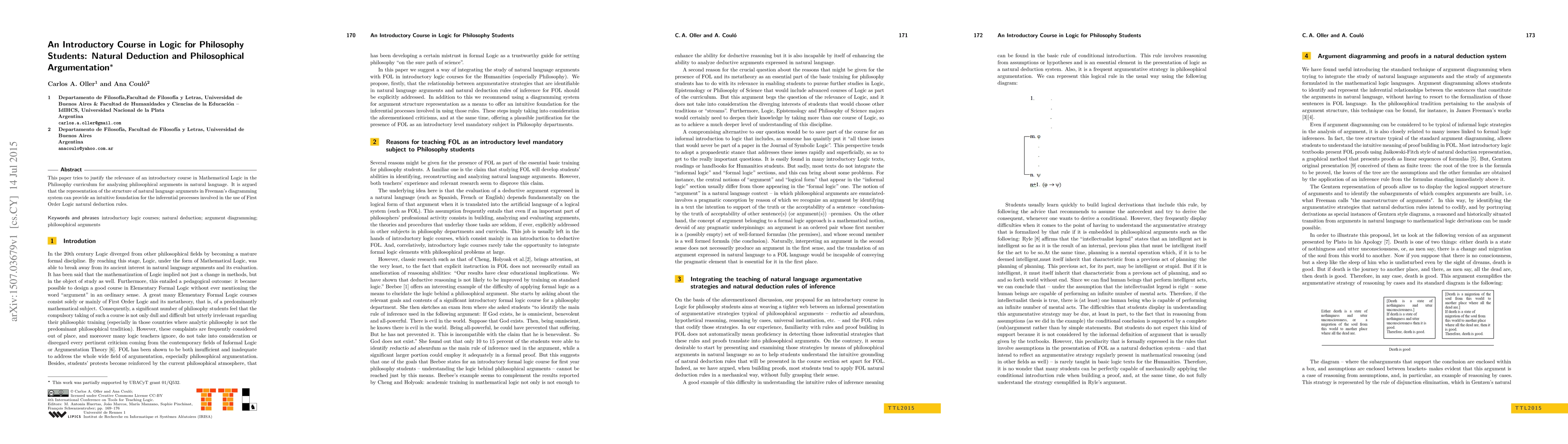 This paper tries to justify the relevance of an introductory course in Mathematical Logic in the Philosophy curriculum for analyzing philosophical arguments in natural language. It is argued that the representation of the structure of natural language arguments in Freeman's diagramming system can provide an intuitive foundation for the inferential processes involved in the use of First Order Logic natural deduction rules.