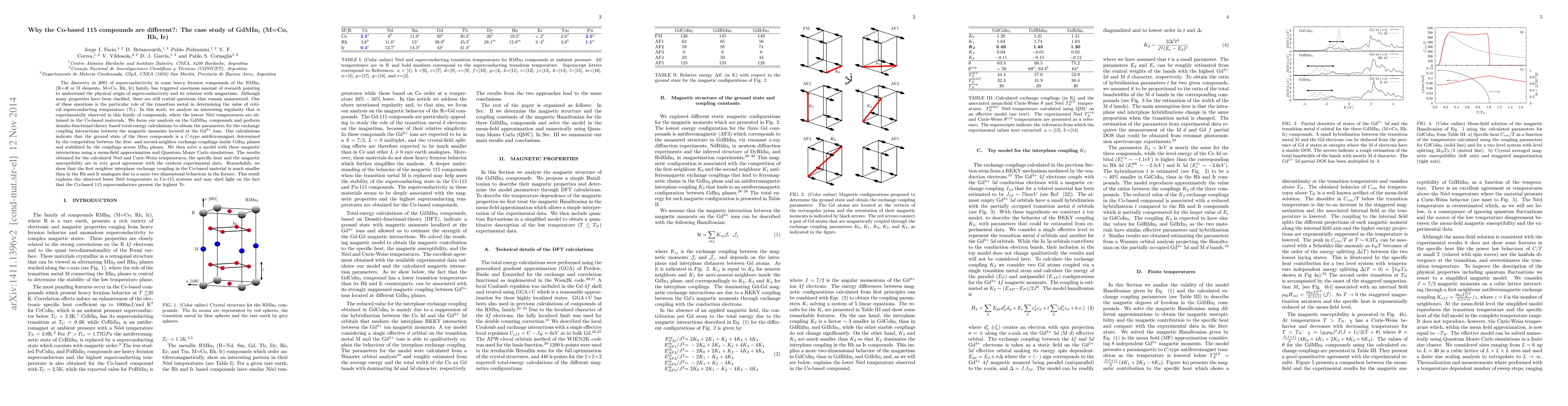 This paper investigates the unique magnetic properties of GdMIn$_5$ (M=Co, Rh, Ir) compounds, revealing that Co-based materials exhibit lower N\'eel temperatures due to a significantly smaller first-neighbor interplane exchange coupling. Density-functional-theory calculations and simulations show that Co's two-dimensional behavior contributes to the highest superconducting critical temperature (Tc) in Co-based 115 compounds.