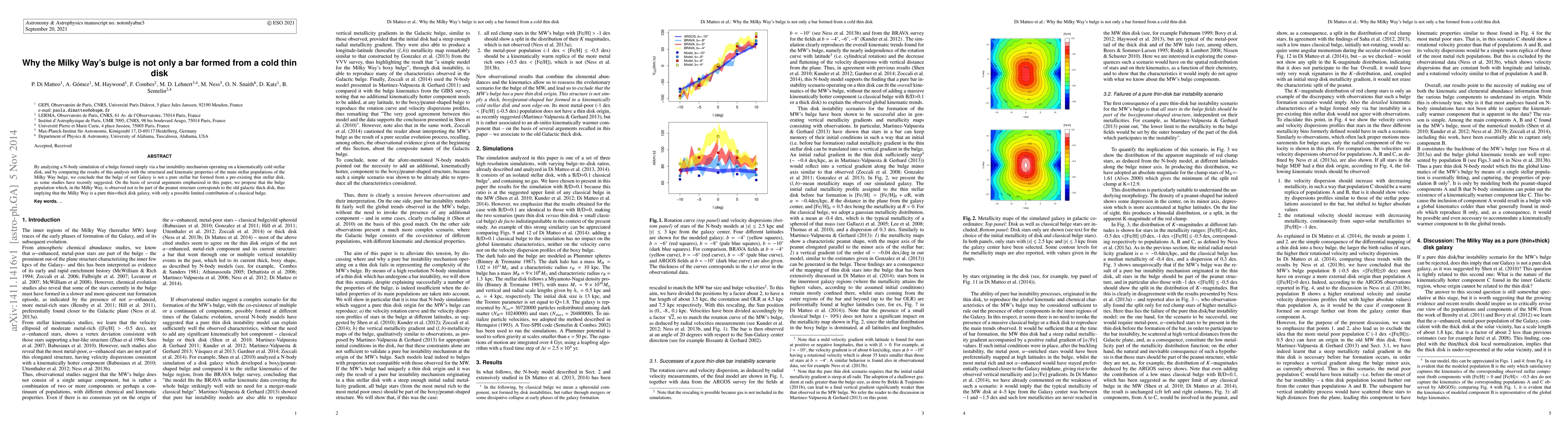 This paper argues that the Milky Way's bulge is not solely formed by a bar from a cold thin disk, but instead includes an old galactic thick disk component, suggesting the galaxy is a thin+thick disk system with minimal classical bulge contribution.