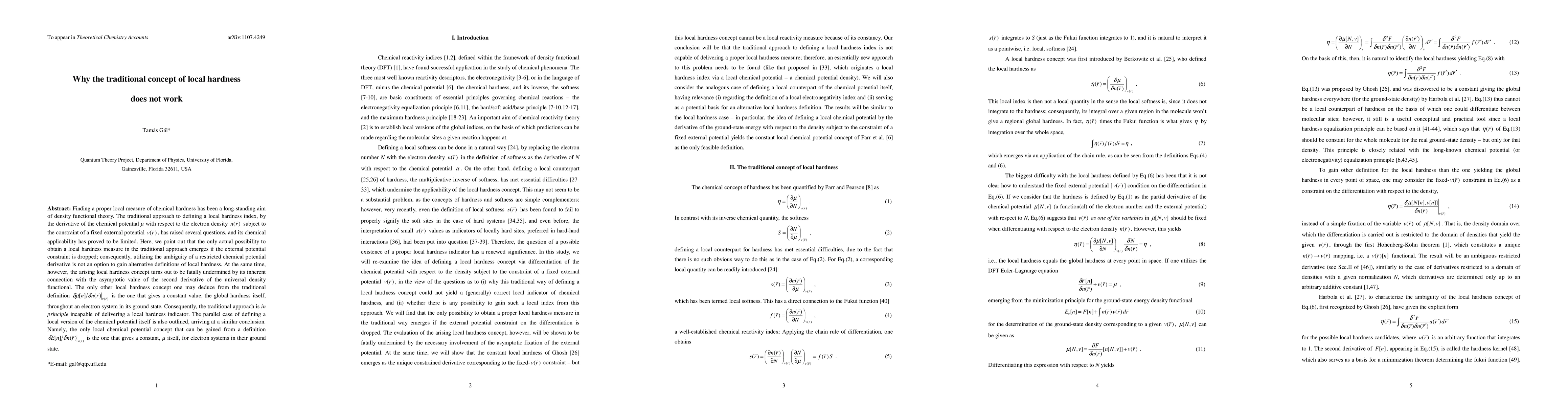 The traditional definition of local hardness in density functional theory fails to provide a meaningful local measure, as it either leads to a constant global hardness or is undermined by its connection to the second derivative of the universal density functional. Similarly, the local chemical potential also yields a constant value in the ground state, indicating the limitations of both concepts.