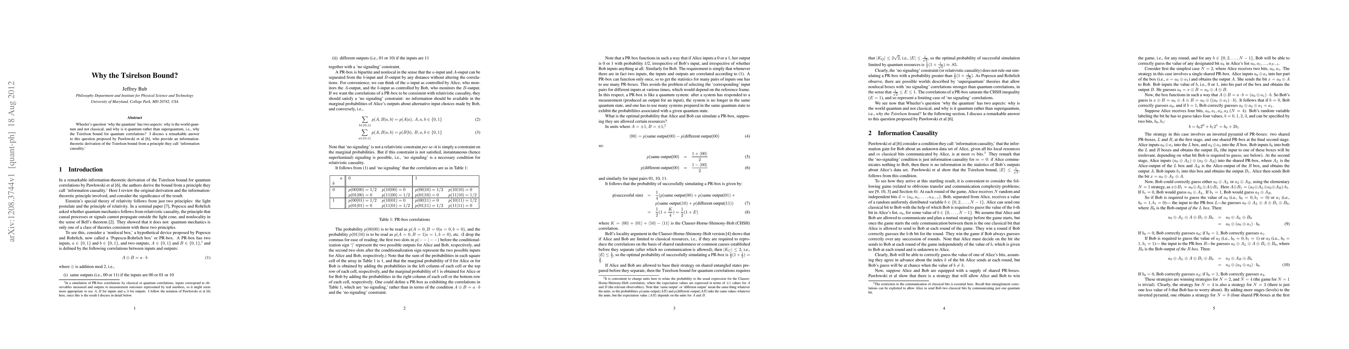 This paper explores the rationale behind the Tsirelson bound in quantum mechanics, proposing that it arises from an information-theoretic principle termed 'information causality' as derived by Pawlowski et al. (2009). This offers a compelling answer to the question of why quantum correlations are limited by this specific bound.