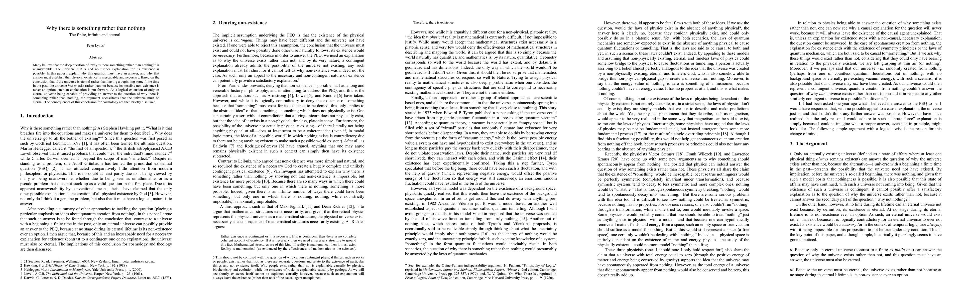 This paper argues that the question "why is there something rather than nothing?" must have an answer, asserting that physical existence is necessary and inescapable. It concludes that an eternal universe provides the only viable explanation, thereby necessitating the universe's eternal existence and discussing its implications for cosmology.