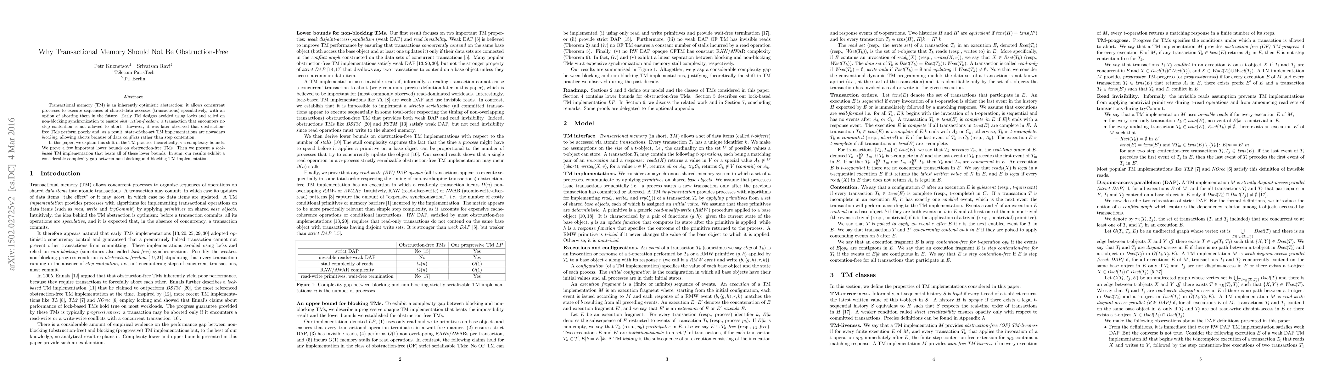 A new study finds that transactional memory systems, which aim to prevent obstruction, actually perform poorly in practice due to data conflicts, leading to the shift from non-blocking to blocking implementations.