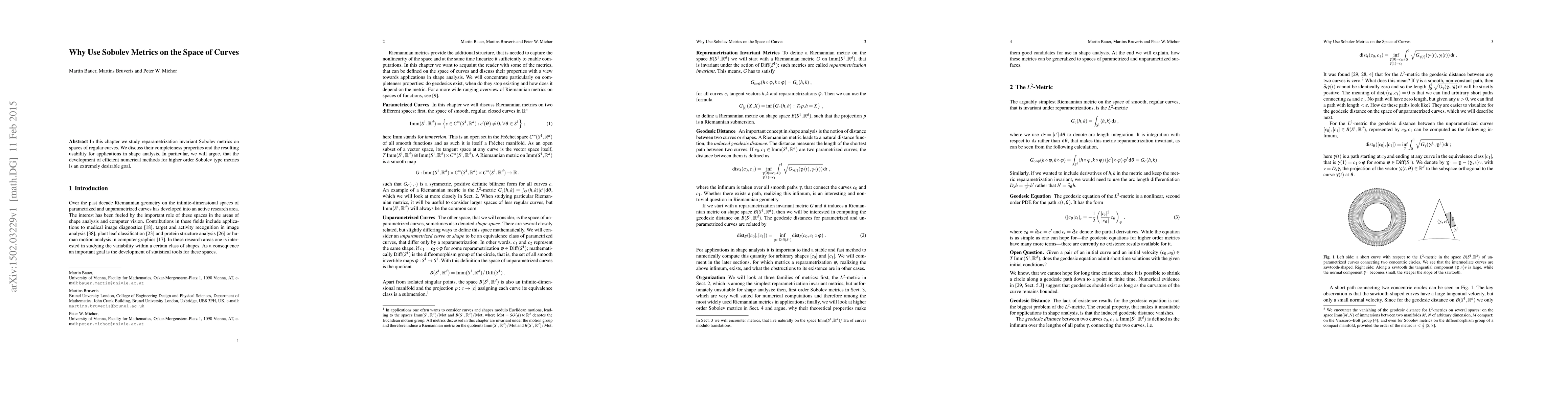 This paper investigates reparametrization invariant Sobolev metrics on spaces of regular curves, focusing on their completeness and applications in shape analysis. It emphasizes the importance of developing efficient numerical methods for higher-order Sobolev metrics for practical use.