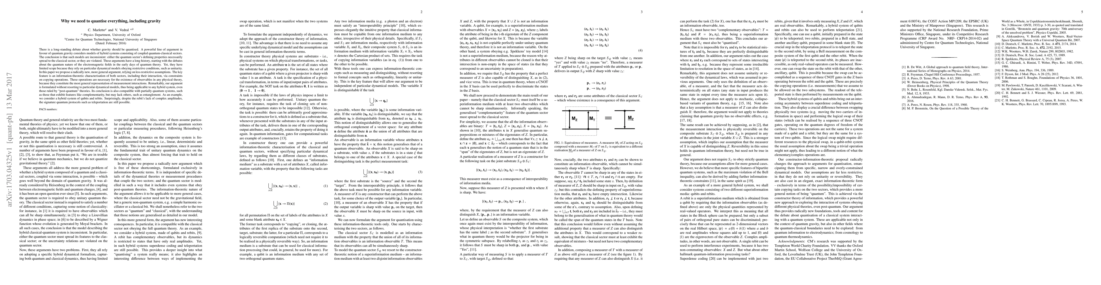 There is a long-standing debate about whether gravity should be quantised. A powerful line of argument in favour of quantum gravity considers models of hybrid systems consisting of coupled quantum-classical sectors. The conclusion is that such models are inconsistent: either the quantum sector's defining properties necessarily spread to the classical sector, or they are violated. These arguments have a long history, starting with the debates about the quantum nature of the electromagnetic fields in the early days of quantum theory. Yet, they have limited scope because they rely on particular dynamical models obeying restrictive conditions, such as unitarity. In this paper we propose a radically new, more general argument, relying on less restrictive assumptions. The key feature is an information-theoretic characterisation of both sectors, including their interaction, via constraints on copying operations. These operations are necessary for the existence of observables in any physical theory, because they constitute the most general representation of measurement interactions. Remarkably, our argument is formulated without resorting to particular dynamical models, thus being applicable to any hybrid system, even those ruled by "post-quantum" theories. Its conclusion is also compatible with partially quantum systems, such as those that exhibit features like complementarity, but may lack others, such as entanglement. As an example, we consider a hybrid system of qubits and rebits. Surprisingly, despite the rebit's lack of complex amplitudes, the signature quantum protocols such as teleportation are still possible.
