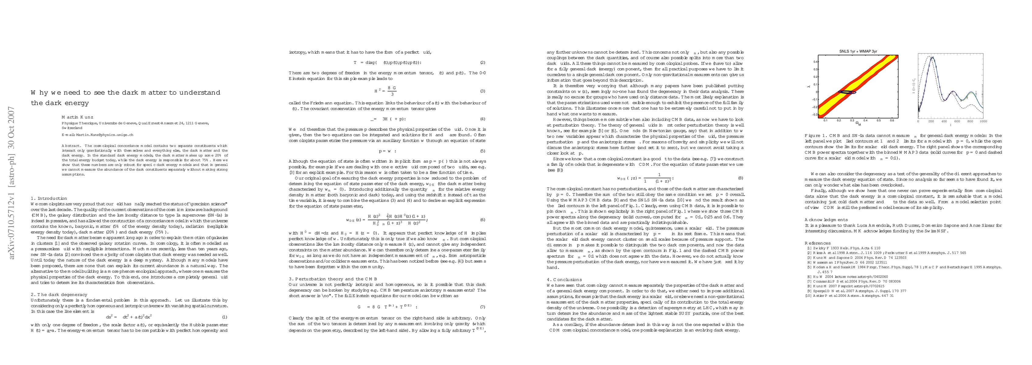 The cosmological concordance model contains two separate constituents which interact only gravitationally with themselves and everything else, the dark matter and the dark energy. In the standard dark energy models, the dark matter makes up some 20% of the total energy budget today, while the dark energy is responsible for about 75%. Here we show that these numbers are only robust for specific dark energy models and that in general we cannot measure the abundance of the dark constituents separately without making strong assumptions.
