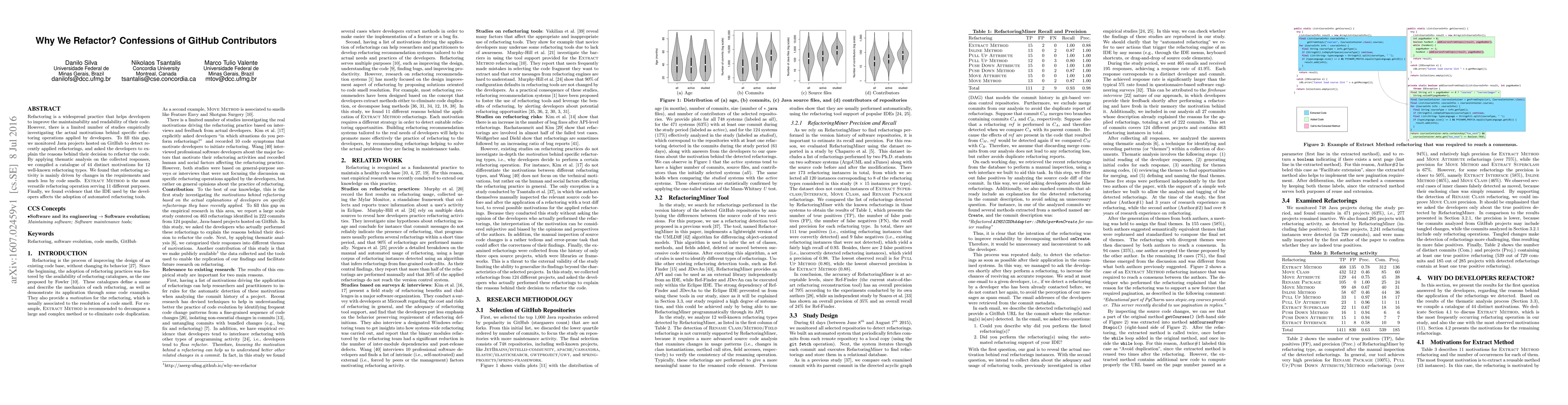 Researchers analyzed GitHub data to understand why developers refactor their code, finding that changes in requirements drive most refactoring decisions and certain IDEs influence the use of automated tools.